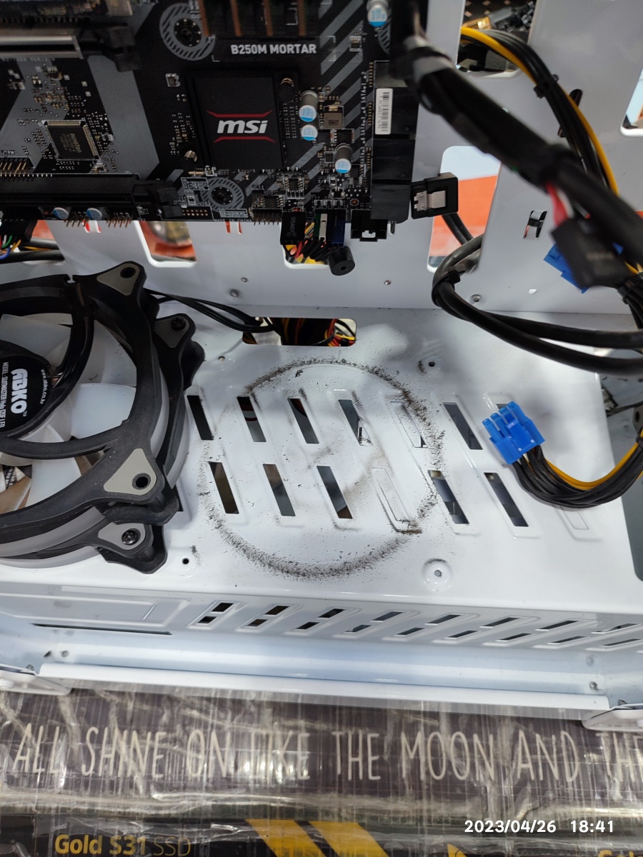 2023년 04월에 입고된 병점 컴퓨터의 사진입니다. 눈으로 보기에는 먼지가 그렇게까지 많아 보이진 않습니다만 먼지가 컴프레셔의 공기압으로 털리지 않는 점성이 있는 먼지라서, 사진을 남겨봤습니다. 주로 실내 흡연을 하시거나 음식점이나 기름기가 공기 중에 있을 때, 먼지랑 섞이면 먼지가 들러 붙여서 잘 안 떨어지는 경우가 있습니다.