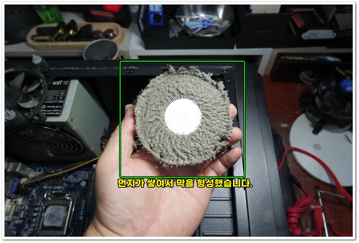 아래는 전면 케이스 팬과 하단 케이스 팬의 먼지입니다.