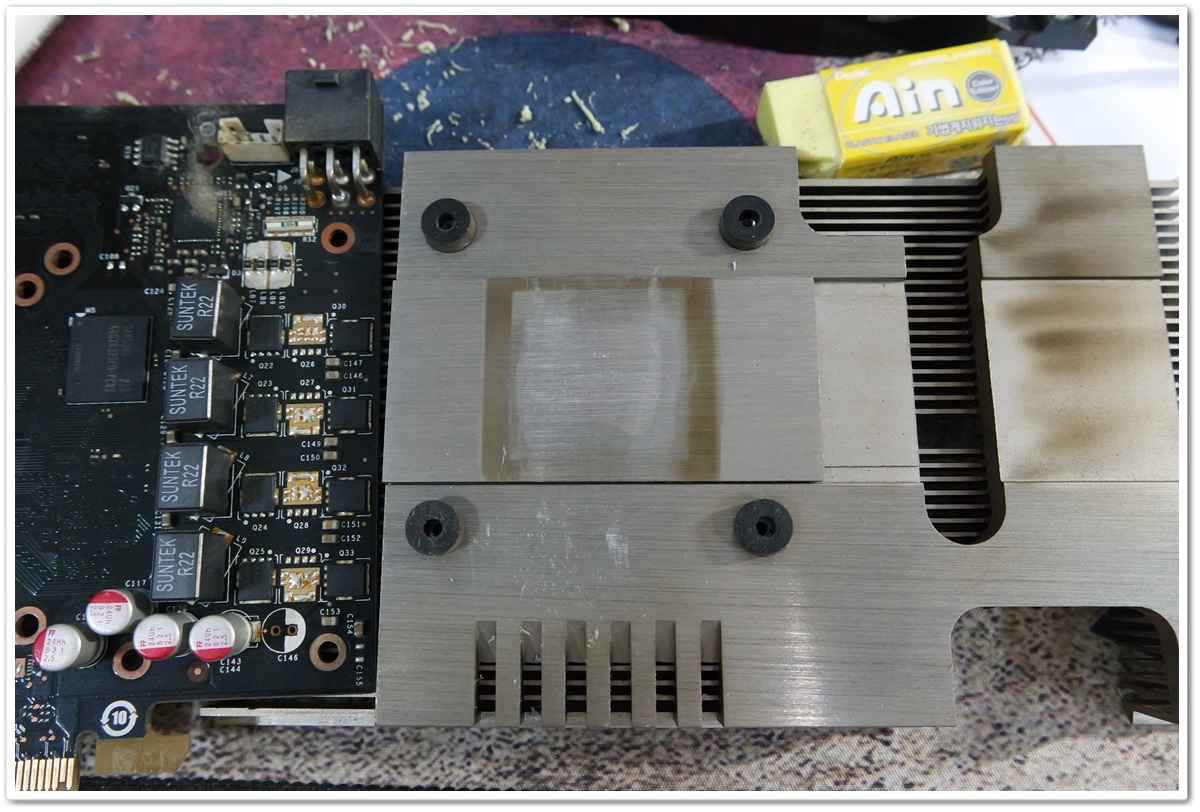 VPU와 방열판에 굳어버린 서멀을 깨끗히 닦아내고 새로운 서멀구리스를 재도포했습니다.