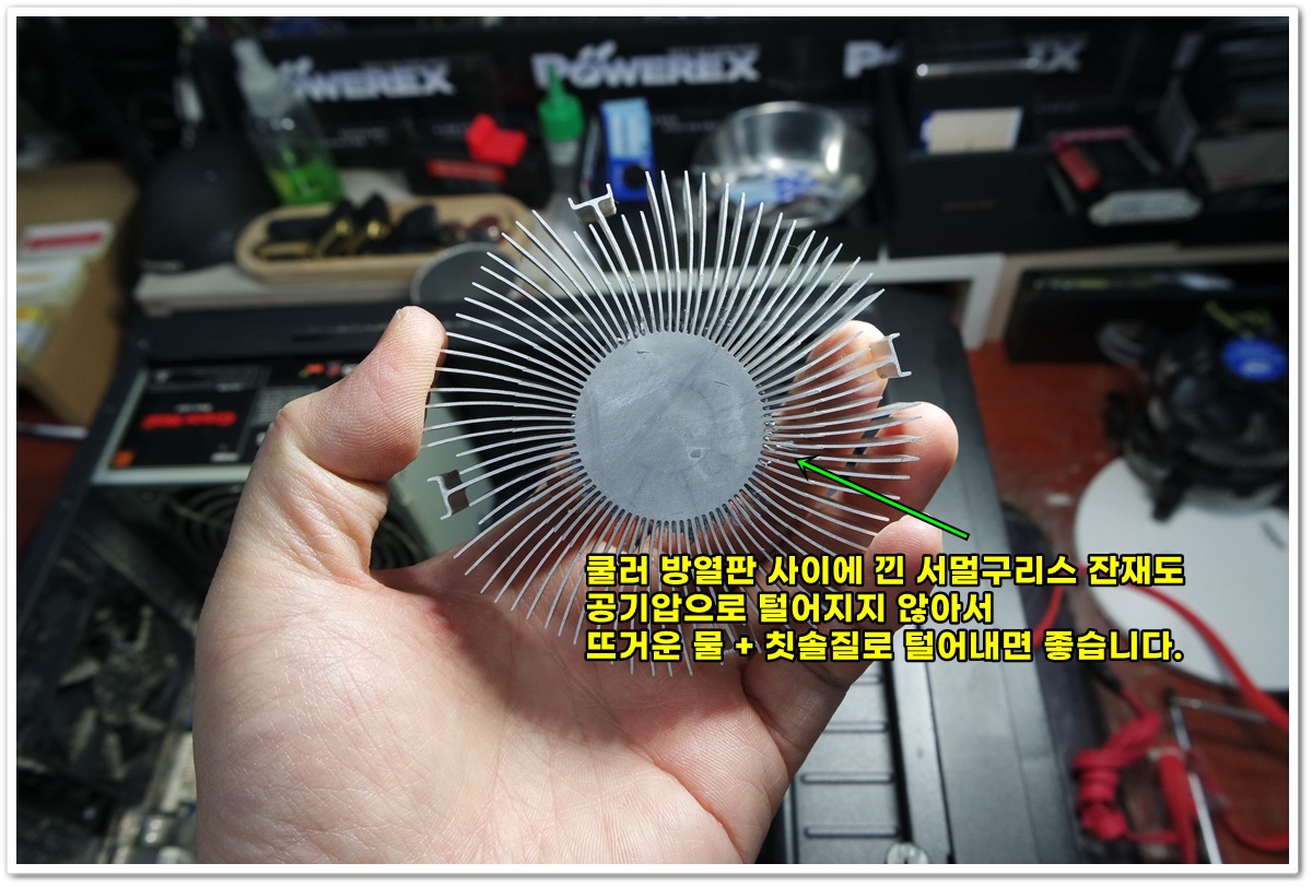 방열판 사이사이 낀 서멀구리스도 뜨거운 물과 칫솔질로 제거할 수 있습니다.