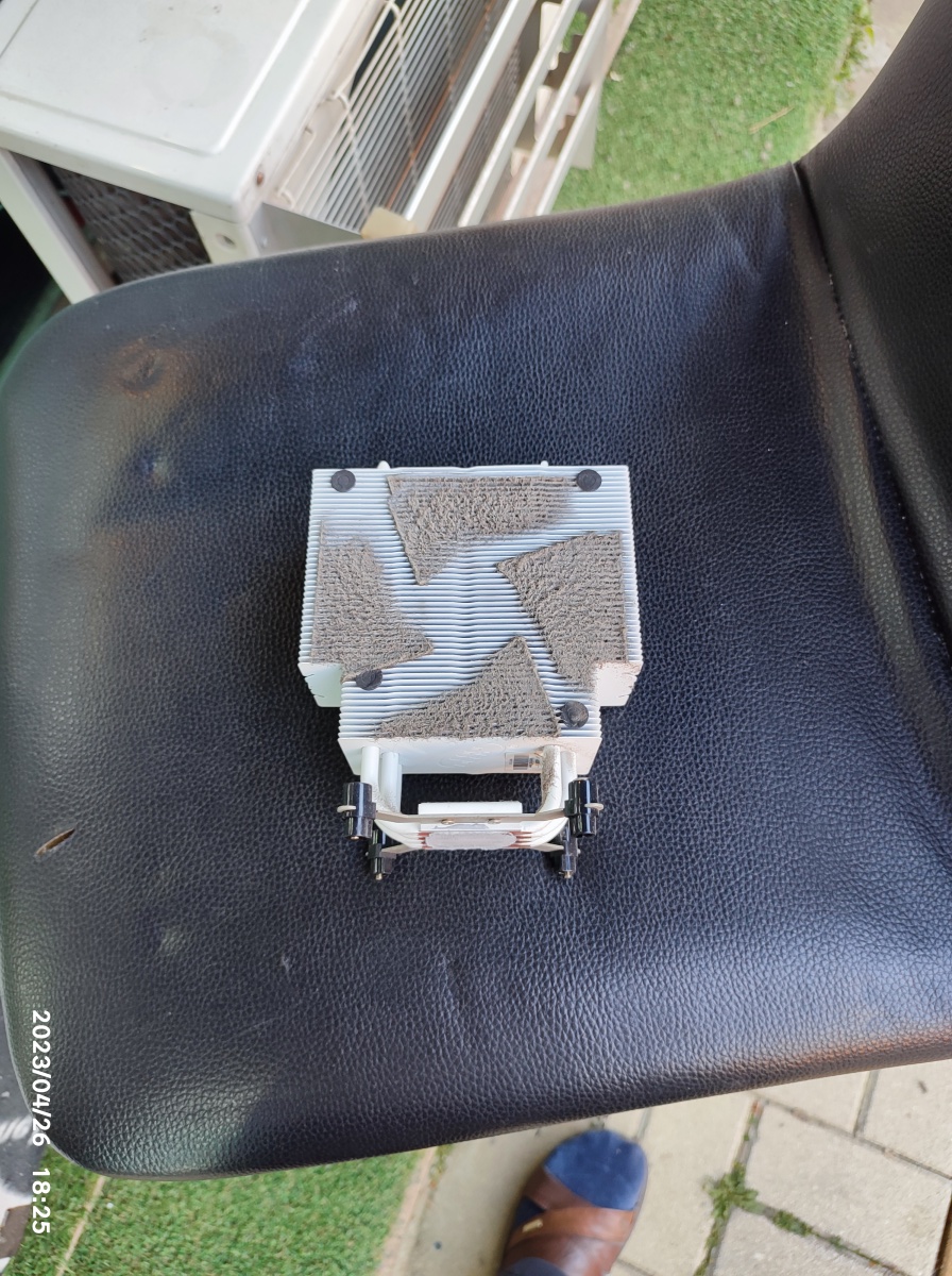 평소에 이렇게까지 청소해드리긴 어렵고요. 특별히 청소하면서 사진을 남겨본 것입니다. 팬 날개를 물티슈로 하나하나 닦아내는 건 댁에서 직접해보시면 좋습니다. 평소에는 물티슈로 먼지를 닦아드리는 경우는 잘 없습니다. 컴프레셔로 털리는 먼지만 털어드리는 경우가 많습니다. 아래의 경우는 컴프레셔로 먼지가 안 털려서 물티슈로 한 번 닦아봤습니다.
