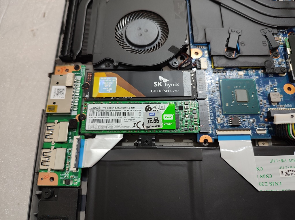 그 외에도 노트북을 이동할 때, 문제가 많이 발생했다는 말씀대로 노트북을 이리 저리 흔들어보고 두드려보고 뒤집고 세우고 책상 위에 놓고 들고 일상적인 행동을 반복해봤지만 기존의 증상 구현은 처음 노트북을 켰을 때, 한 번만 뜨고 안 나오고 있습니다. 말씀해주신 상황만으로 유추해보면, D드라이브의 HP SSD의 소켓 접속 불량이나 SSD 불량 증상으로 보이지만 노트북의 뒤판을 열어야 기존 SSD 재장착이 가능한 상황인데요. 단순 뺐다가 끼우는 것만으로는 해결될지 안될지 불안하니깐, 아예 SSD 교체를 원하셔서 SK 하이닉스 S31 500GB M.2 SSD로 교체하는 작업을 진행했습니다.
