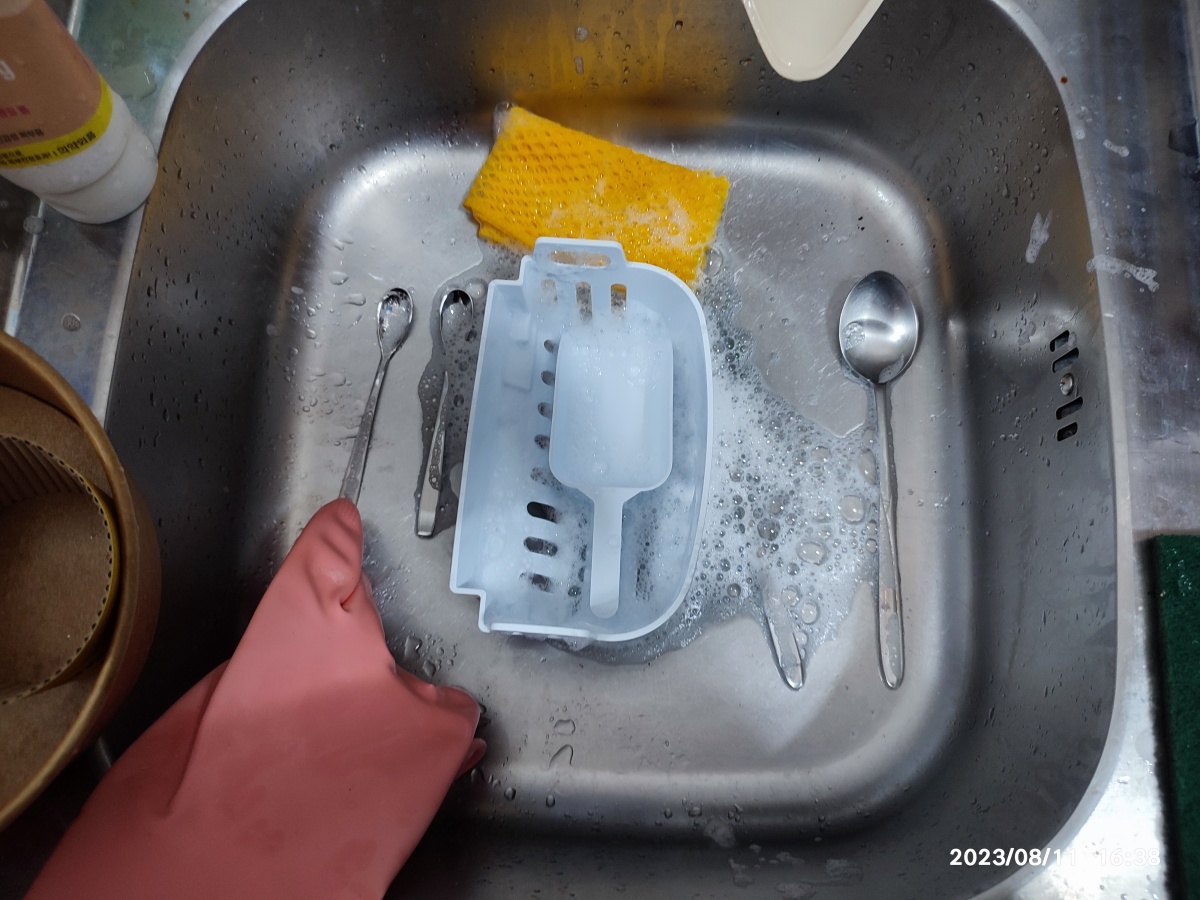 얼음 스푼이랑 얼음 바구니는 분리가 가능해서, 싱크대에서 세제로 세척했습니다.