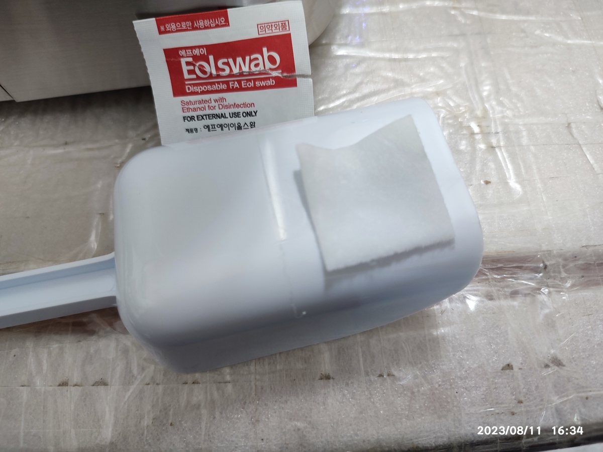 제거된 고정 테이프는 4개입니다. 알콜 스왑으로 테이프 자국을 제거하고 세제로 닦아냈습니다.
