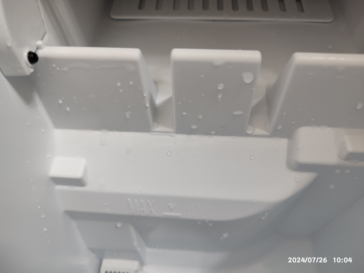 아이스 메이커 사용한지 1년 정도 지났네요. 성능 괜찮고 만족하는 상품입니다. 근데, 문제는 청소가 문제네요. 물 때가 낍니다. 특히, 아래와 같이 물이 빠지는 구멍에 빨간색 물때가 끼더라고요. 사진은 청소하고 찍은 사진이라서 잘 안 보일 수 있습니다. 그렇다고 주방 세제로 닦기도 어렵습니다. 왜냐면, 물을 빨아 당기는 구조라서, 노출된 부분은 잘 세척한다고 할 수 있지만, 물을 당기는 부분은 안에 들어가서 세제로 닦기도 어렵지만 세제를 제거하기도 어려울 거 같아요? 청소하기도 어려운 부분인 거 같습니다.