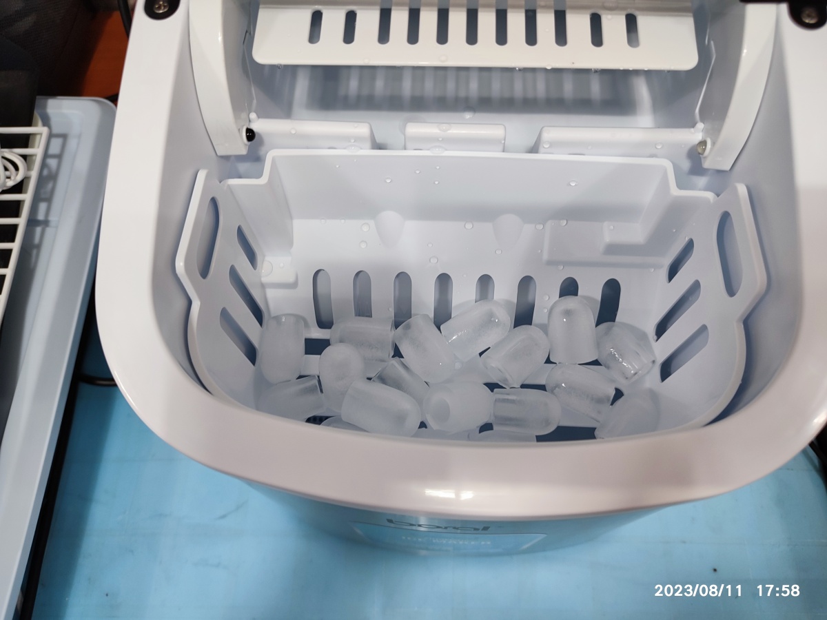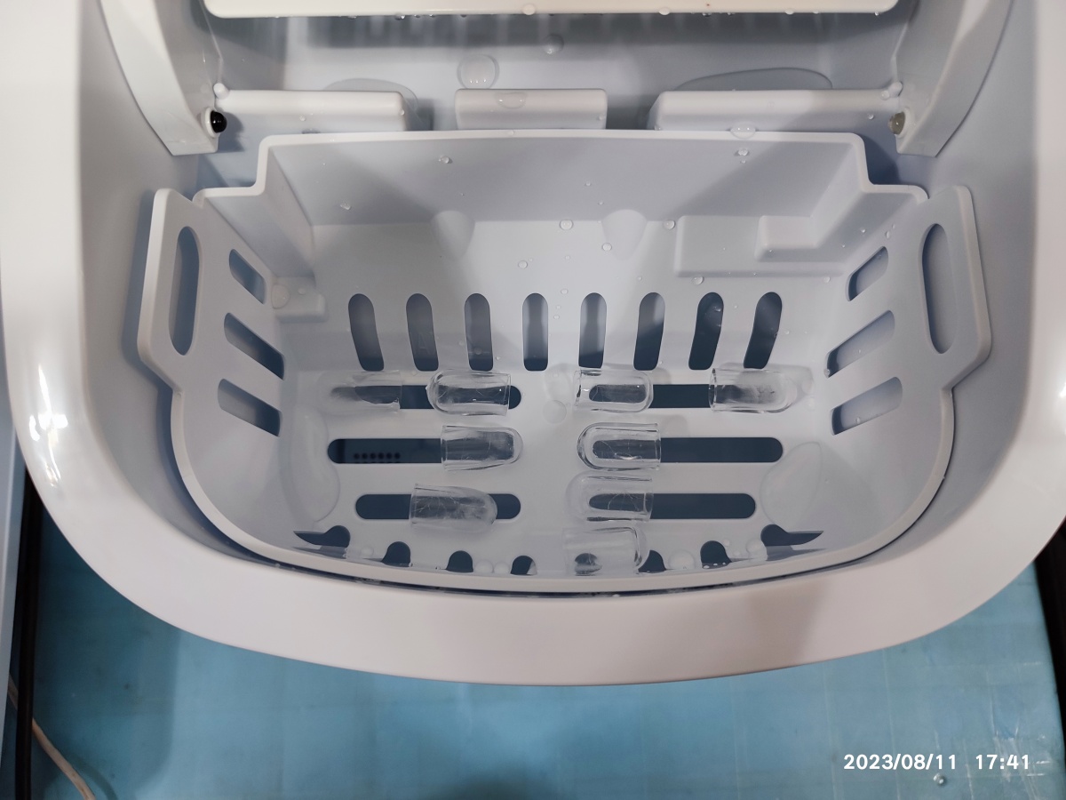 제품을 구입하고 처음으로 만들어진 얼음입니다. 첫 동작이라서 아직은 얼음이 제대로 형성되지 못한 모습입니다. 얼음이 이상하게 얼어서 조금 실망을 했습니다만 기다리니깐 제대로 된 얼음이 나오네요. 그리고 냉장고 등을 이동하고 바로 전원을 연결하면 기능이 제대로 동작되지 않는 걸로 알고 있습니다. 제빙기도 배송 온 상태에서 바로 동작시키면 문제가 있을 거 같네요. 내부 청소도 하시고 세척도 하시고 평평한 바닥에 제품이 제대로 자리 잡고 20~30분은 가만히 놔둔 상태로 동작시켜야 제대로 동작될 듯합니다.