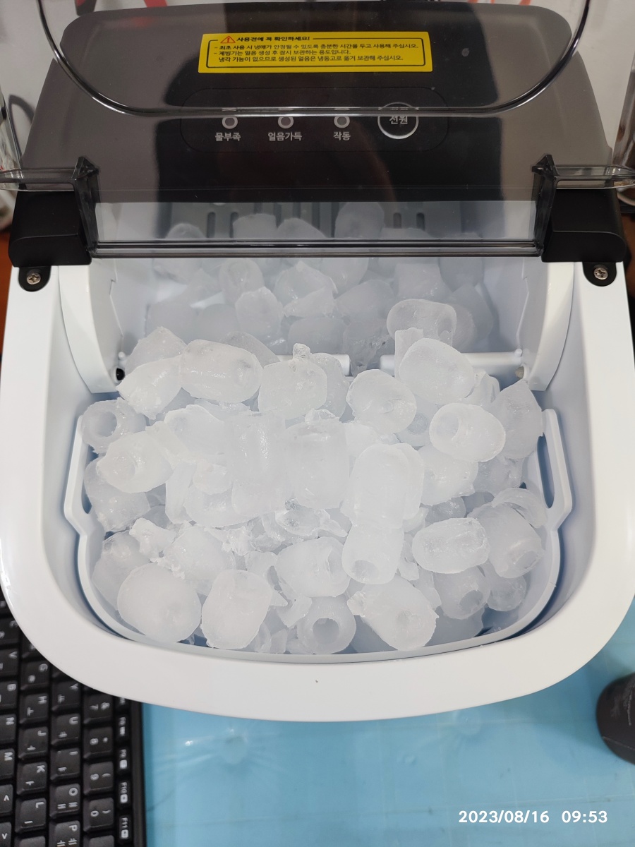 어제 얼궈둔 얼음을 쏟아부었더니 얼음 부자된 기분이네요. 여름 막바지에 구입한 제빙기지만, 요즘 카페도 안 가고 사놓은 음료(커피, 식혜, 홍초 등)에 얼음 타먹고 있습니다. 하루 커피 1~2잔 5천 원 X 30일 = 15만 원인데, 한 달만 잘 사용해도 본전은 나오네요.