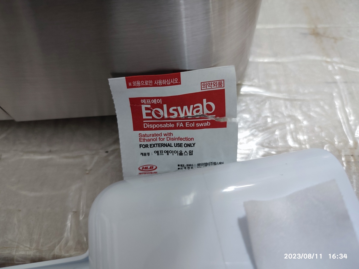 제거된 고정 테이프는 4개입니다. 알콜 스왑으로 테이프 자국을 제거하고 세제로 닦아냈습니다.