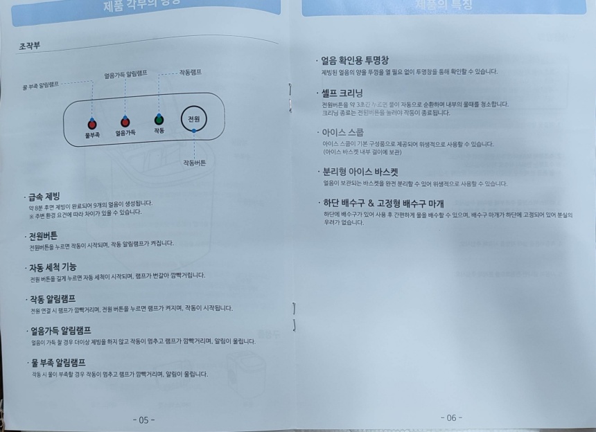 얼음 스푼이랑 얼음 바구니만 분리됩니다. 본체는 물 세척(세제)이 안 되고 자동 세척 기능으로 세척했습니다.