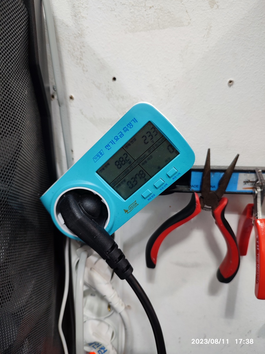 전기 사용량은 얼음 생성 과정에 따라서 70~120W 정도 소요되고 있습니다. 소음은 사무실에서 사용하면 크게 거슬리진 않을 정도입니다. 팬 회전하는 부분에서 뜨거운 바람이 나오기는 합니다. 탕비실이 있다면 (별도의 분리된 공간) 크게 거슬릴 거 같진 않습니다.