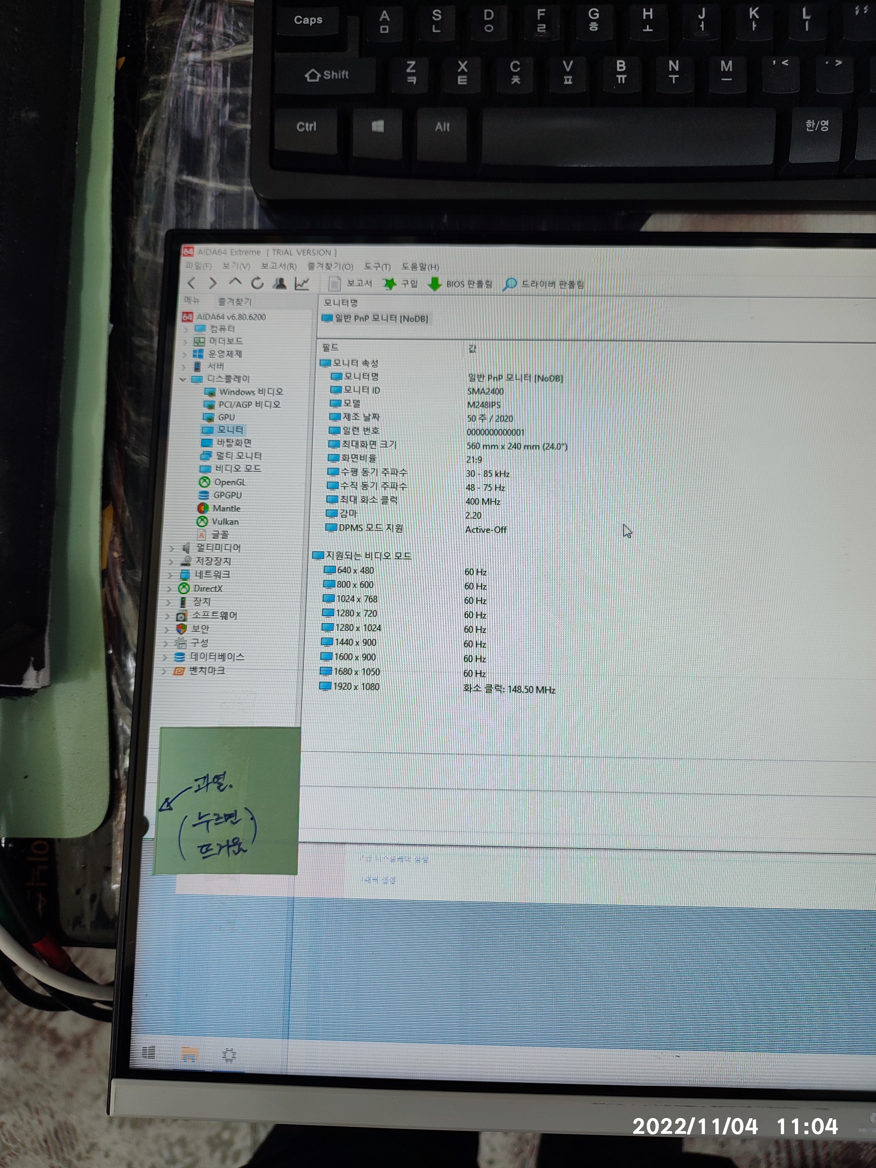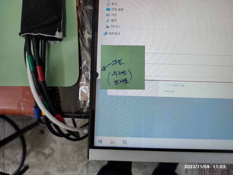 (2021년 11월) 모니터 판매 후~ (2022년 09월) 10개월 정도 사용하고 아래와 같이 모니터에 가로줄이 생겼습니다. 처음에는 외부 충격으로 액정의 손상이 생긴 게 아닐까 의심을 했었지만 손님께서는 책상 위에 가만히 놔두고 사용했고 평소에 열이 많이 났다고 합니다.