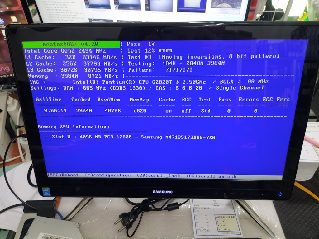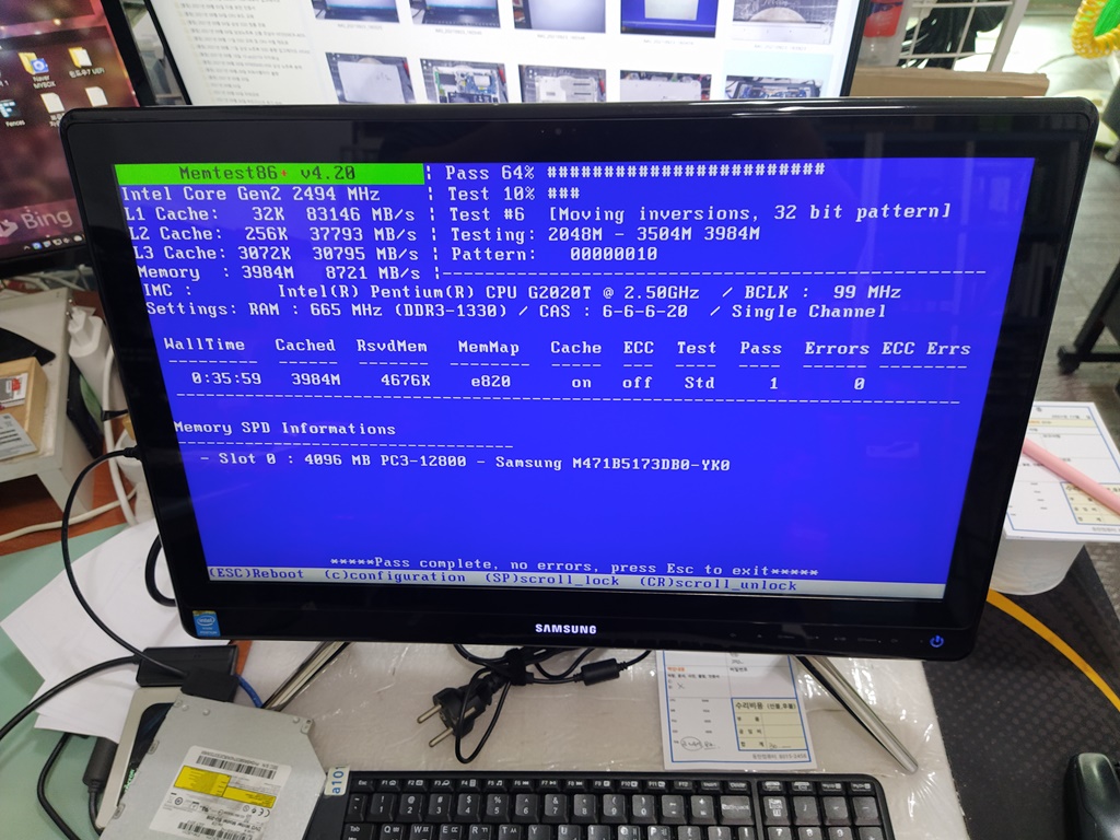 부품을 테스트해볼 수 있는 간단한 프로그램을 돌려봅니다. 4시간 중에 한 번 블루스크린이 뜨고 그 다음부터는 증상이 한번도 나타나질 않습니다. 이런 경우에는 실사용께서 직접 사용해보셔야 합니다. 하루에 한 두번 정도, 일주일에 한 두번 정도 뜨는 블루스크린 오류는 컴퓨터 매장에서 한 시간 넘도록 증상이 안나오면, 잡기가 상당히 어렵습니다.