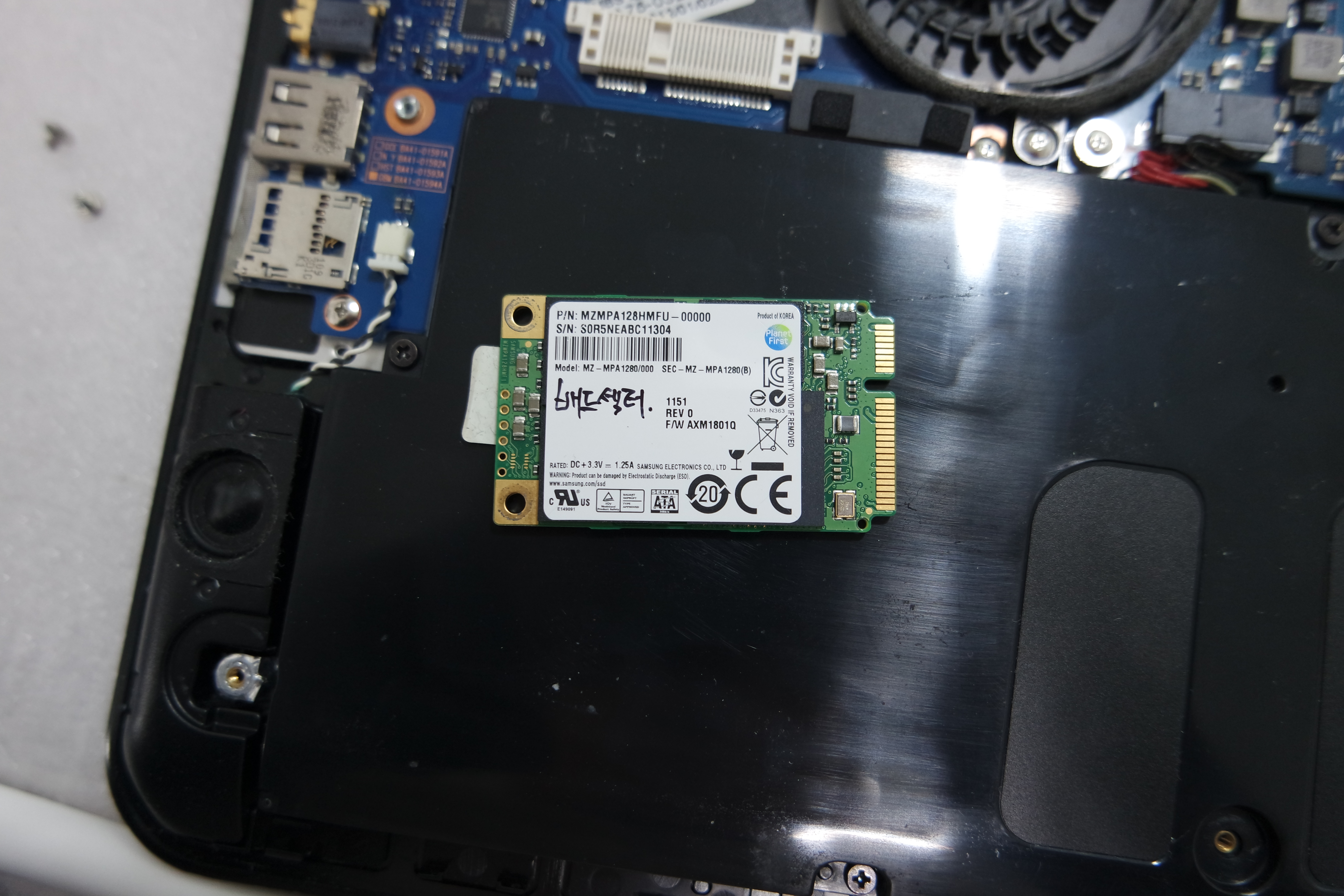 중고 mSATA형 SSD 250기가를 교체 장착했습니다. 중고는 1개 남은 테스트용으로 보유하고 있던 제품입니다.