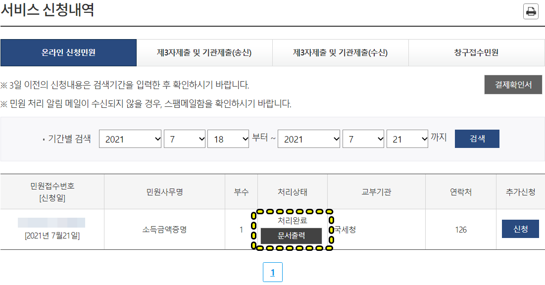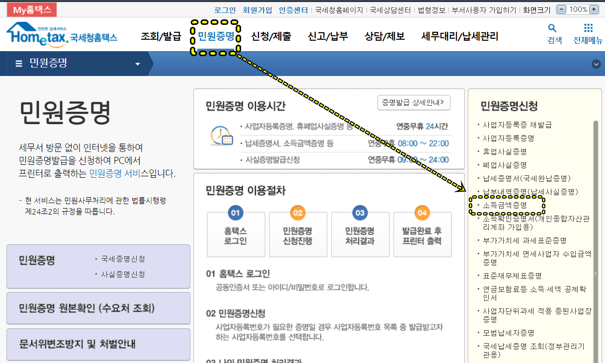 - 소득금액증명 신청 이용시간 : 08시 ~ 22시