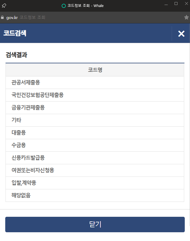 2. 전화번호 입력하고 용도와 수령방법은 옆에 있는 검색버튼을 눌러서 새창이 뜨면 선택합니다.