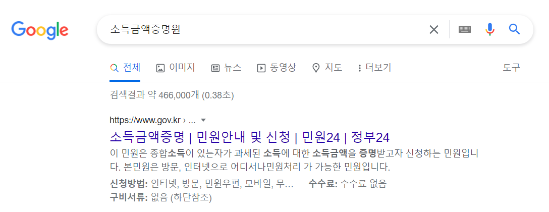 "구글"에서 소득금액증명원을 검색하시면, 아래와 주소로 연결됩니다.