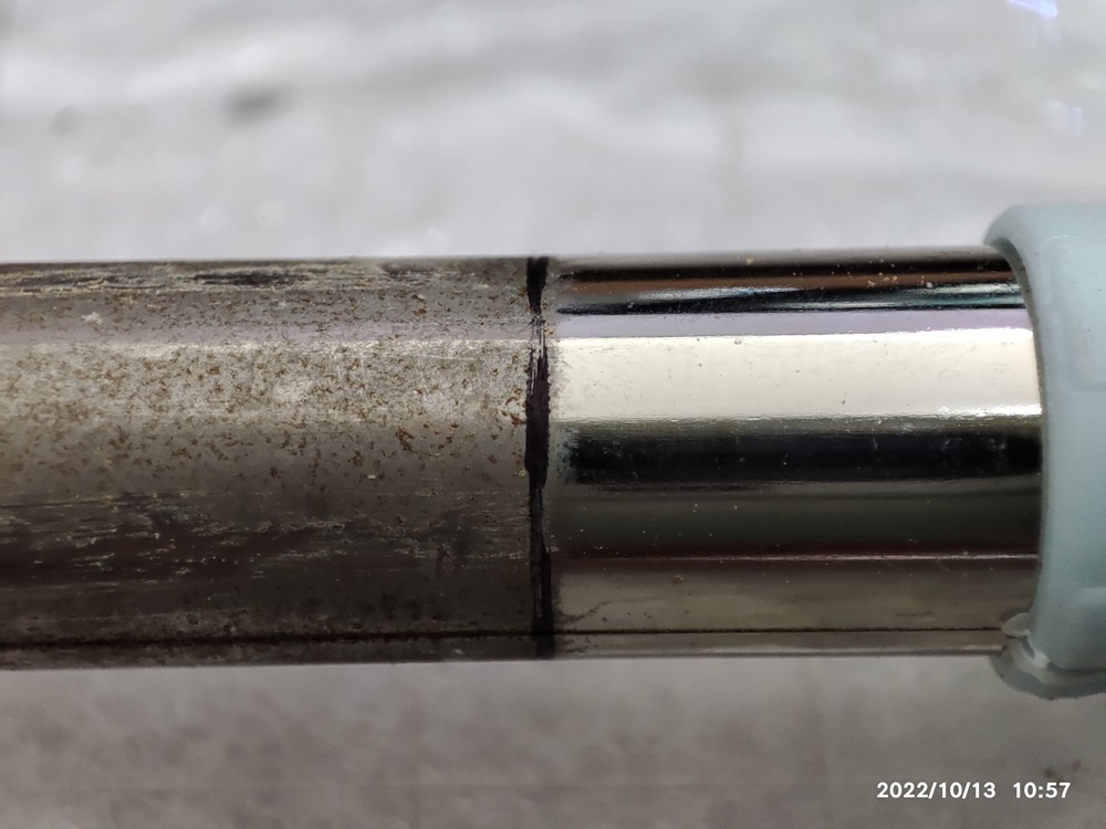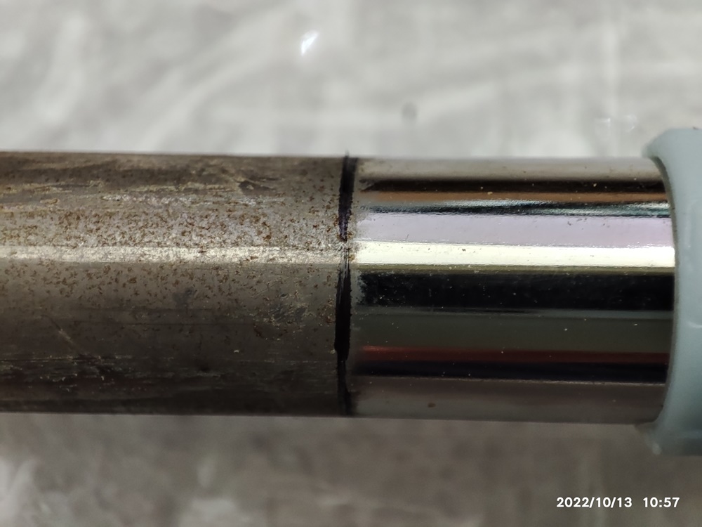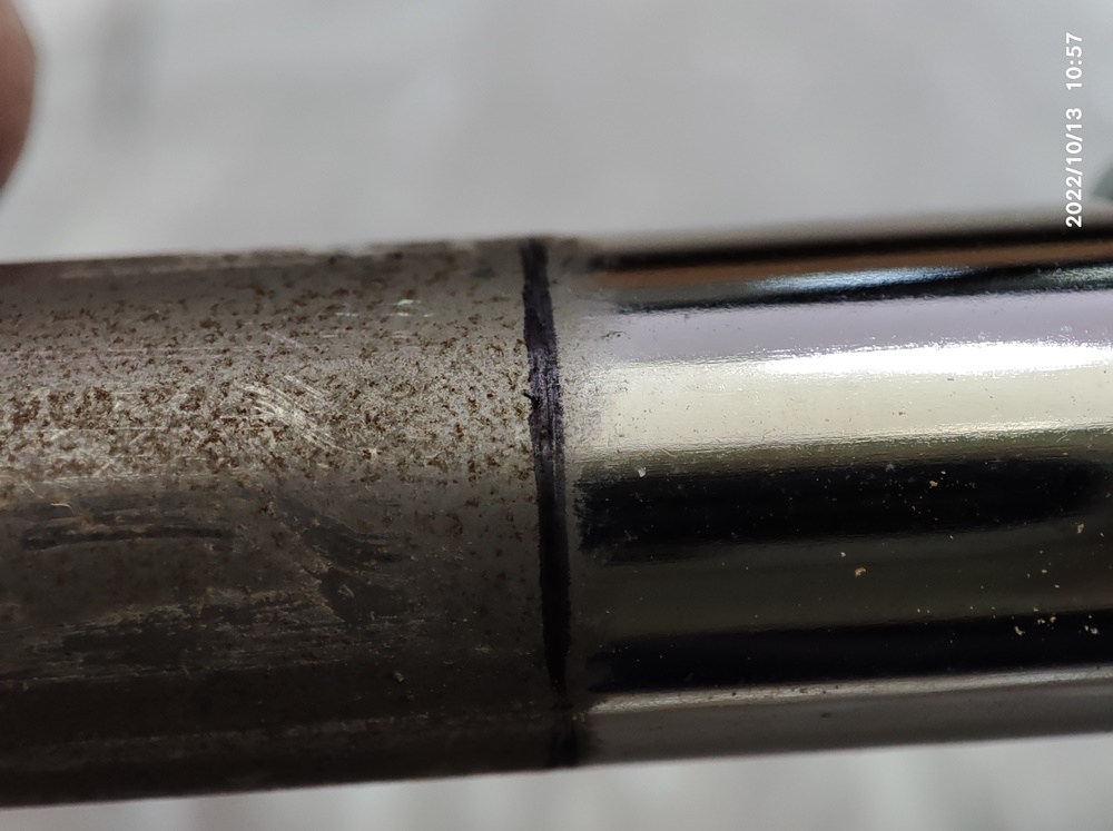 네임펜으로 커버 밖에서 선을 그어봤습니다. 녹이 안쪽으로 조금 침투한 게 보이긴 하지만, 안쪽의 스텐 재질은 외부에 노출된 부분에 비해서 아주 새것처럼 깨끗하네요.