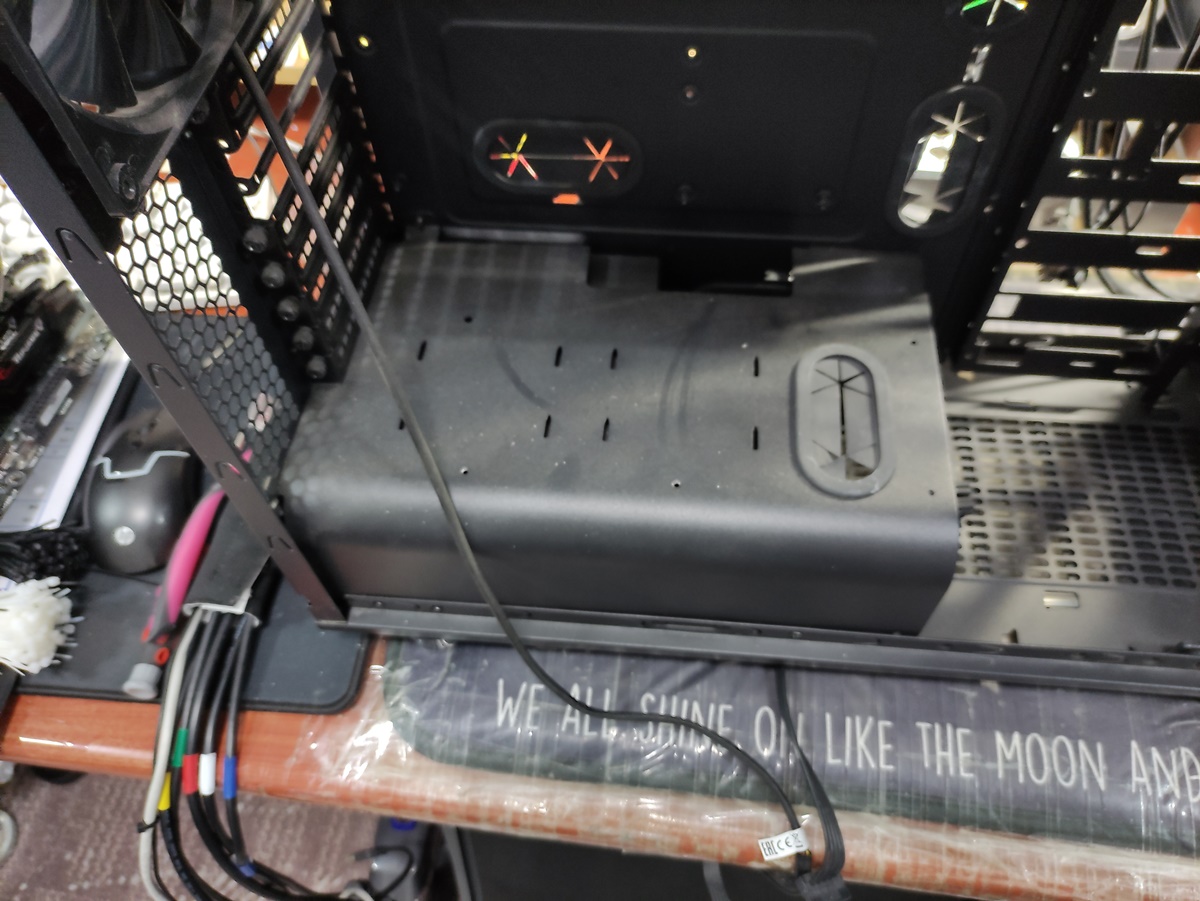 This is the final form after assembling the mainboard, graphics card, etc. The CPU auxiliary power line was short, so I had to cross the mainboard.