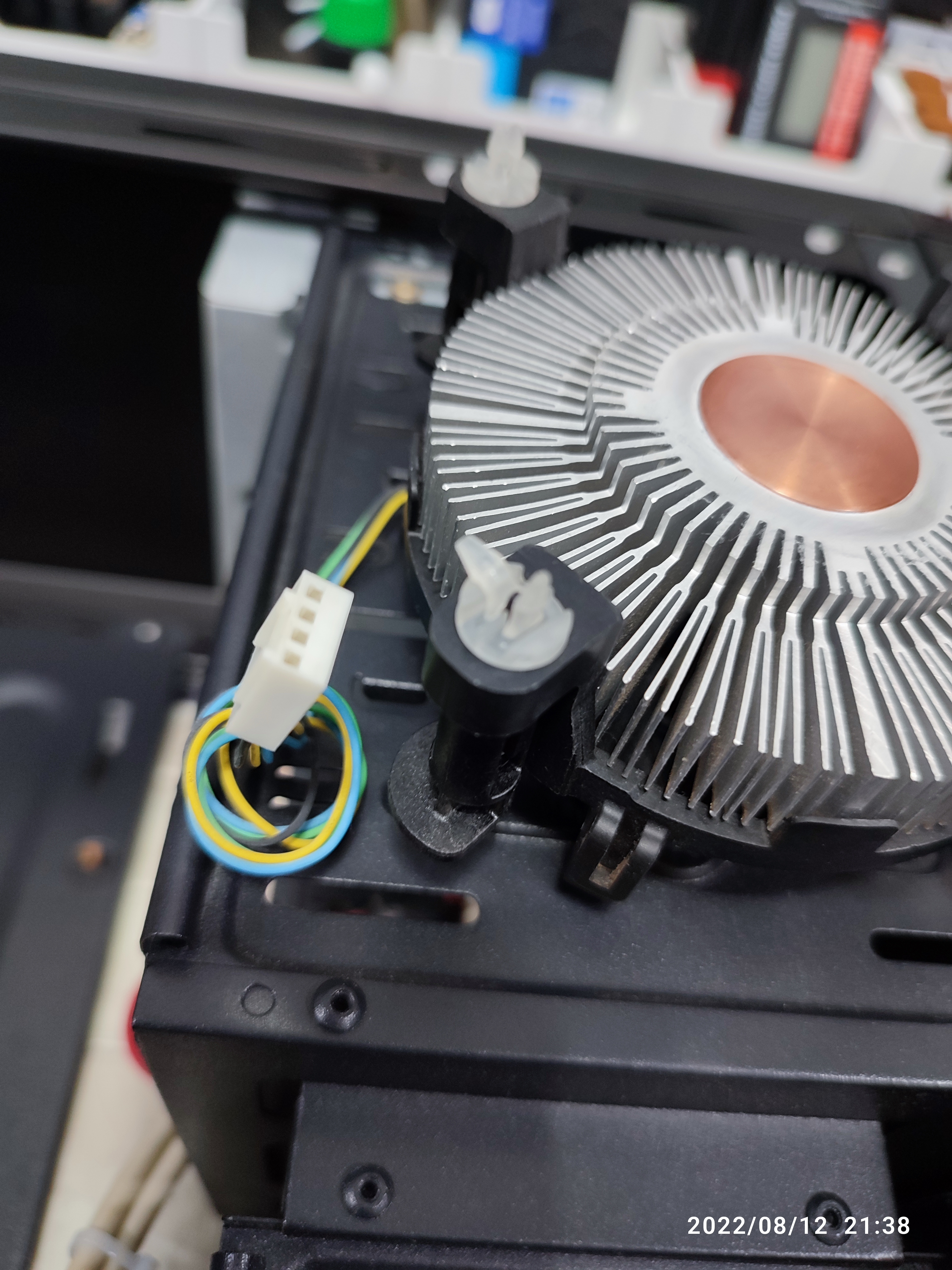 The fixing pin plastic on the CPU cooler is bent. When assembling, there are a lot of mistakes in this part. We don't recommend reusing this kind of broken plastic because it creates cramps. Ripped (repaired) a known-good fixing pin from another CPU cooler.