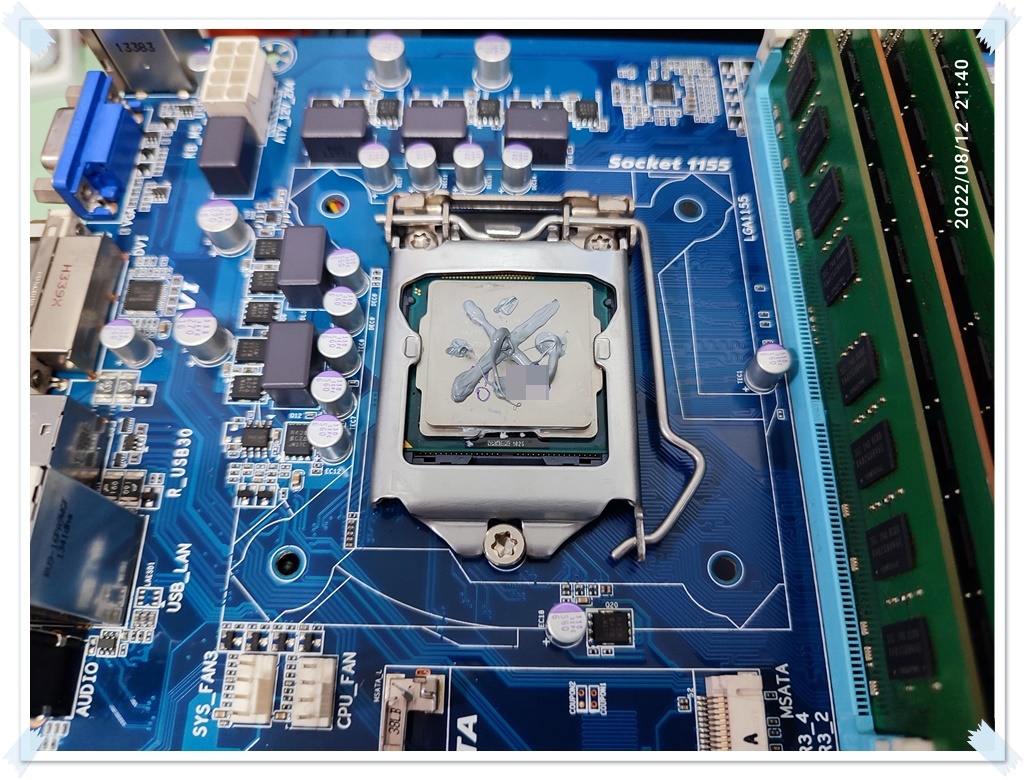 We will prepare the used motherboard you brought, and we will test the operation of the motherboard by installing the components (CPU, RAM). The customer's CPU is a 3rd generation i5 product, but it's still an i5 product, so it's expensive if it breaks down, so I tested it with a 3rd generation celloron CPU. Occasionally, a bad motherboard can cause the CPU to die. It's rare, but it's good to be careful because it's not rare enough to get one or two cases a year. (This is a case of CPU failure due to faulty motherboard.)