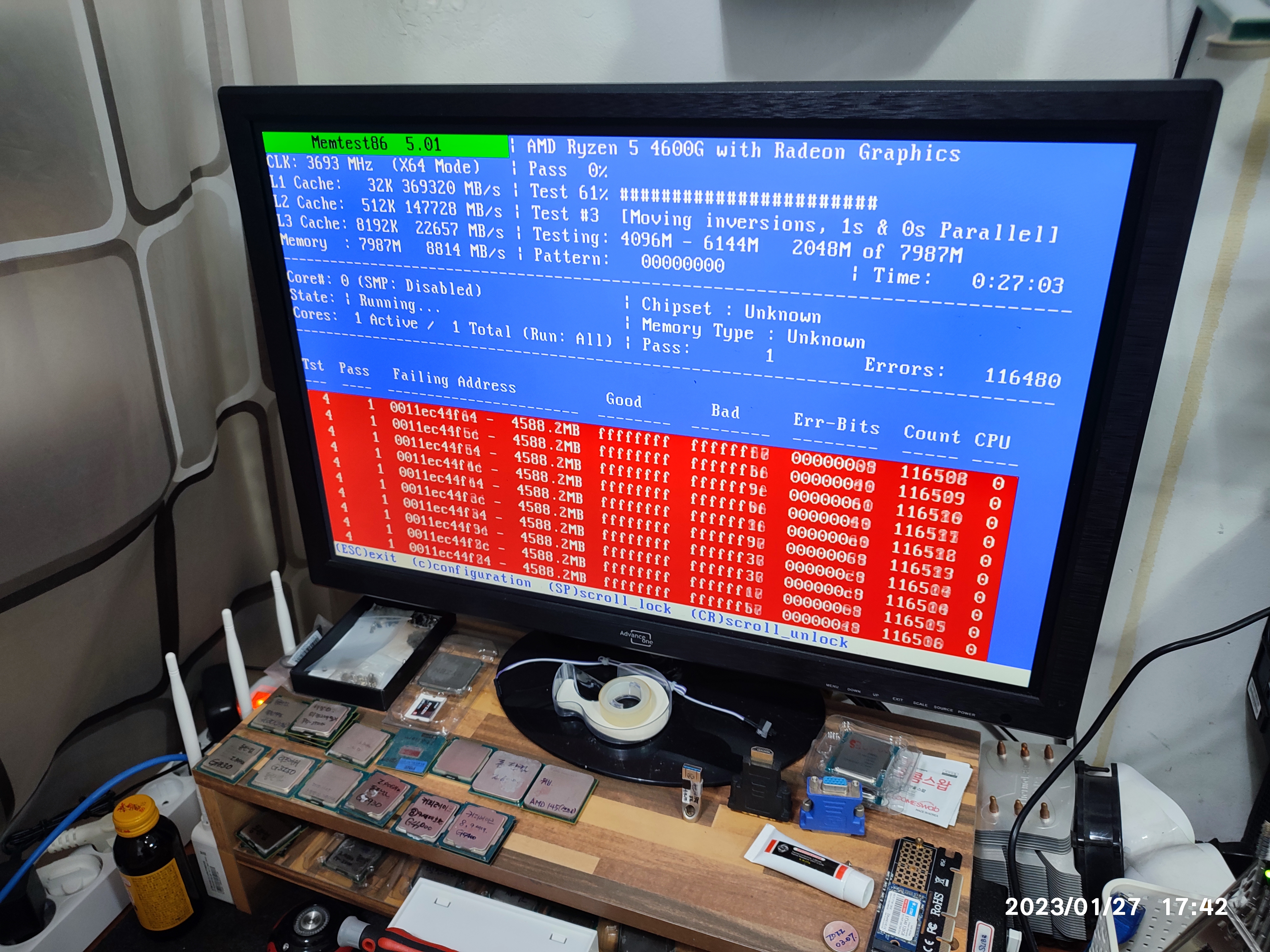 An error was detected in one of the four memory units. I did a more intensive examination of this memory. The main board checked above is another test main board. I mounted it on your main board and checked again for any abnormalities.