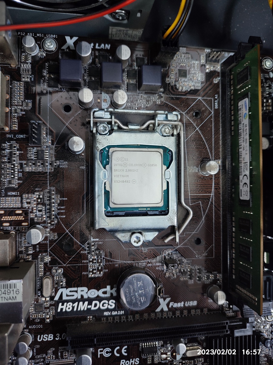 CPU 서멀을 재도포하기 위해서 CPU 쿨러를 뜯었더니, 셀로론 CPU가 장착된 상태입니다. 제가 테스트용으로 사용하는 4세대 인텔 펜티엄 CPU가 있어서 셀로론 CPU와 무상으로 맞교체를 해드렸습니다. 어차피 테스트용으로 사용할 CPU라서, 셀로론을 사용하니 펜티엄을 사용하나 저는 별차이가 없지만, 실사용자는 셀로론보단 펜티엄이 성능이 높아서 낫습니다. i3, i5 등의 출시 당시 중고가형의 CPU를 사용하면, 조금 더 성능 향상이 느껴집니다. i3나 i5 CPU는 저도 구입해야하는 CPU라서 유상 업그레이드 가능합니다.