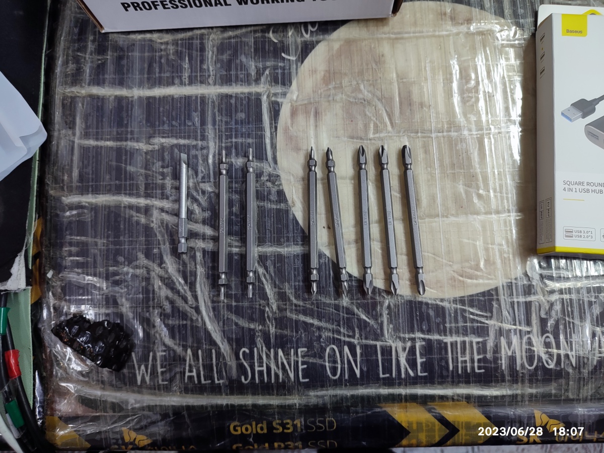 박스를 열어보니깐, 비트가 널브러진 상태네요. 해외 배송이다보니깐 어쩔 수 없습니다. 비트는 다시 주워담으면 됩니다. 본체가 멀쩡하면 됩니다.