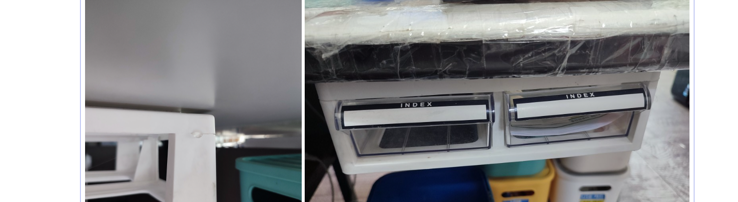 박스를 놓고도 앞쪽에 공간이 생겨서 자잘한 부품들을 놔두고 작업할 수 있습니다.