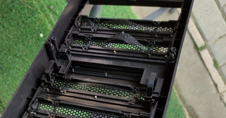 The following case is an example of fan noise that occurred after dust cleaning, when the dust filter on the front bezel came loose and detached.