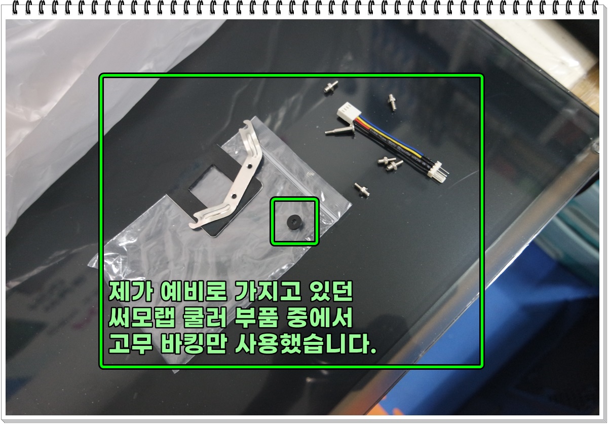 중고로 쿨러를 가져오시기는 했는데 쿨러 고정나사를 고정하는 고무링이 하나가 부족하네요. 마침, 예전에 사용하고 남았던 부속이 있어서 사용하기는 했습니다만, 저한테 부속이 없는 경우에는 조금 난감하기는 합니다. 어떻게든, 응용해서 작업을 하기는 하겠지만 원래 있던 부속이 다 있는 것만은 못할테고요. (중고는 이런 부분도 난감할 때가 있습니다.)