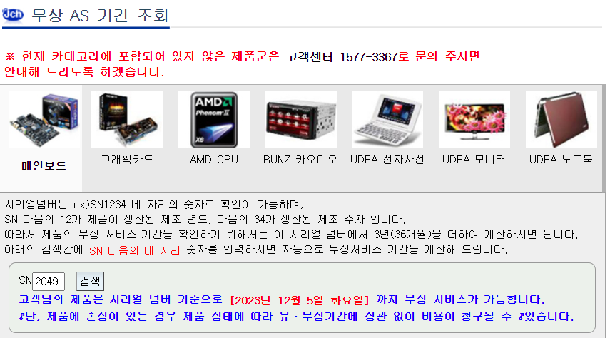 제이씨현 홈페이지에서 기가바이트 메인보드 무상 A/S 기간 조회하기