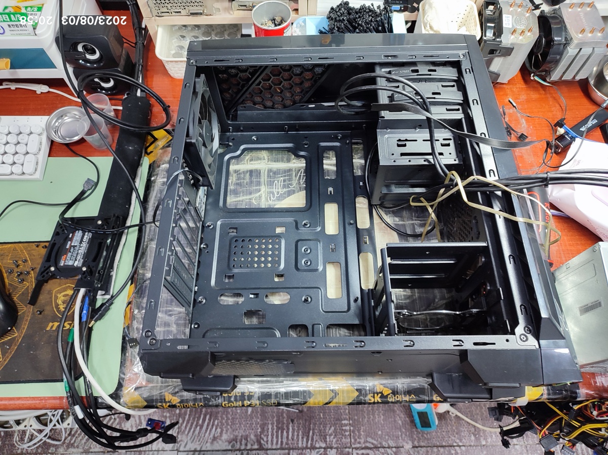 윈도우 일부 기능의 이상이 생겨서 윈도우10 재설치 작업을 진행하면서, 케이스의 선정리가 안 된 상태라서 선 정리를 부탁하셨습니다. 선 정리는 재조립이라고 보시면 됩니다. 거의 모든 부품을 분리했다가 다시 조립해야 하는 경우가 많습니다.
