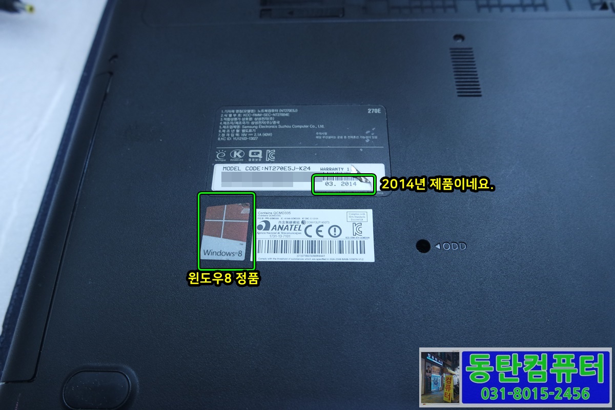 2014년 제조된 삼성노트북으로 SSD는 장착이 안되고 하드디스크만 장착된 보급형(저사양) 노트북입니다.