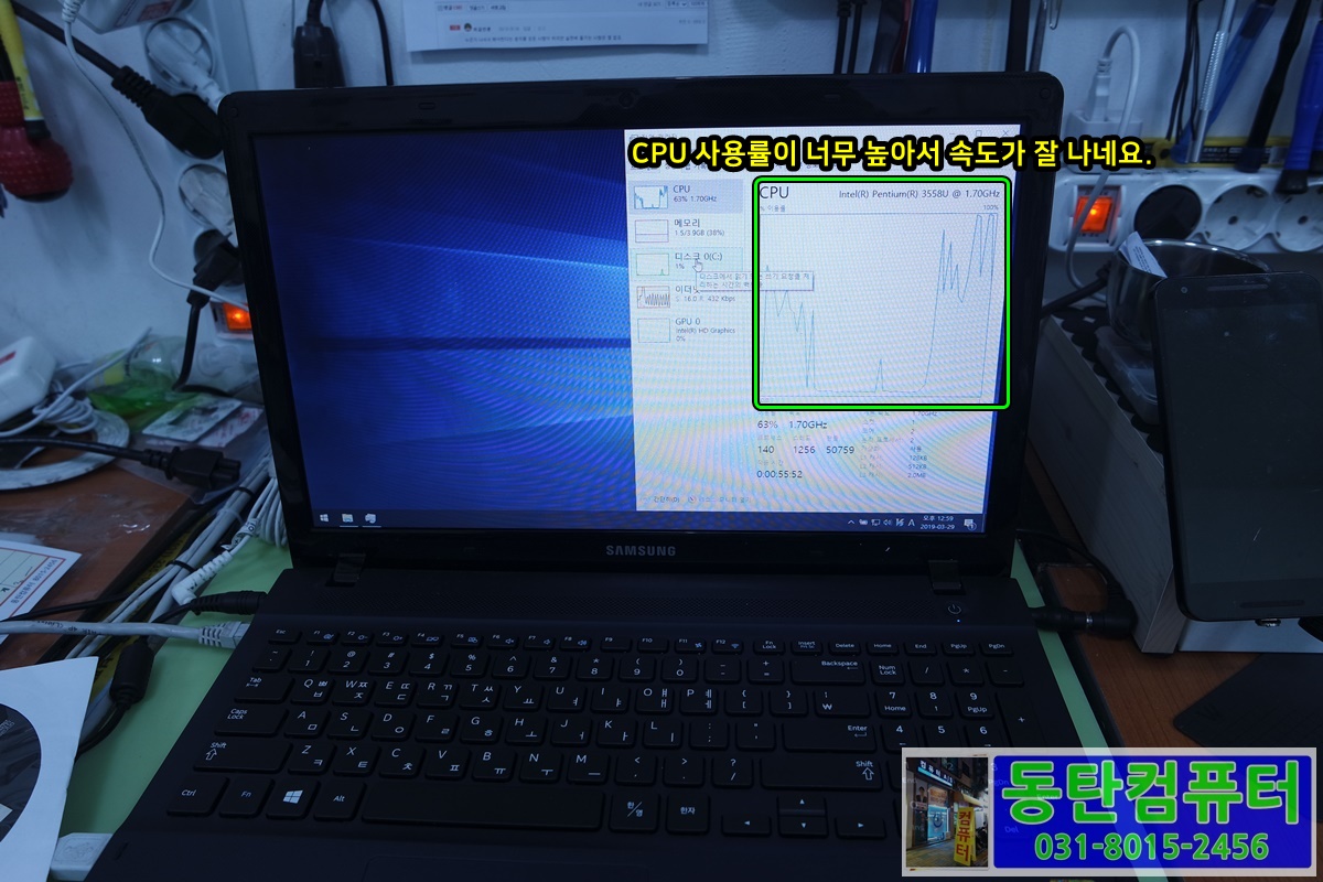 문제는 저전력 CPU 3558U (1.70GHz)의 중앙 처리 장치의 처리 능력이 문제라서,