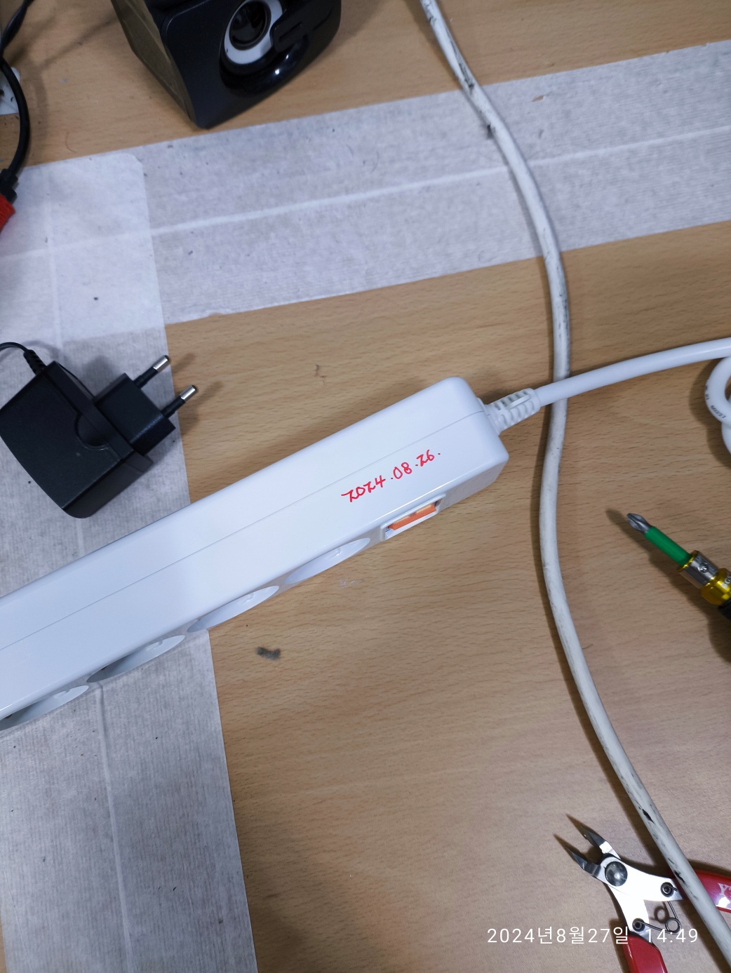 아래는 이번에 교체한 멀티탭입니다. 나중에 확인하기 좋게 교체한 날짜를 적어뒀습니다.