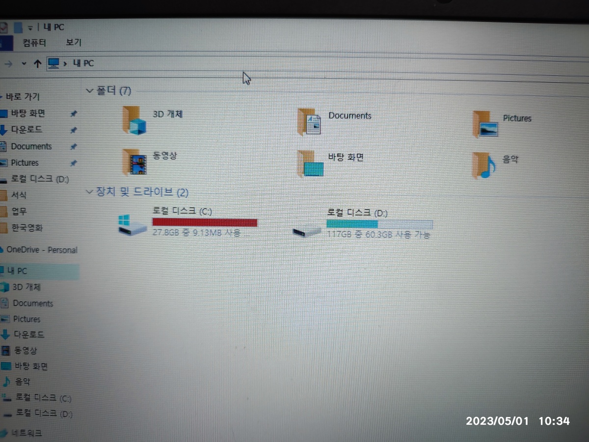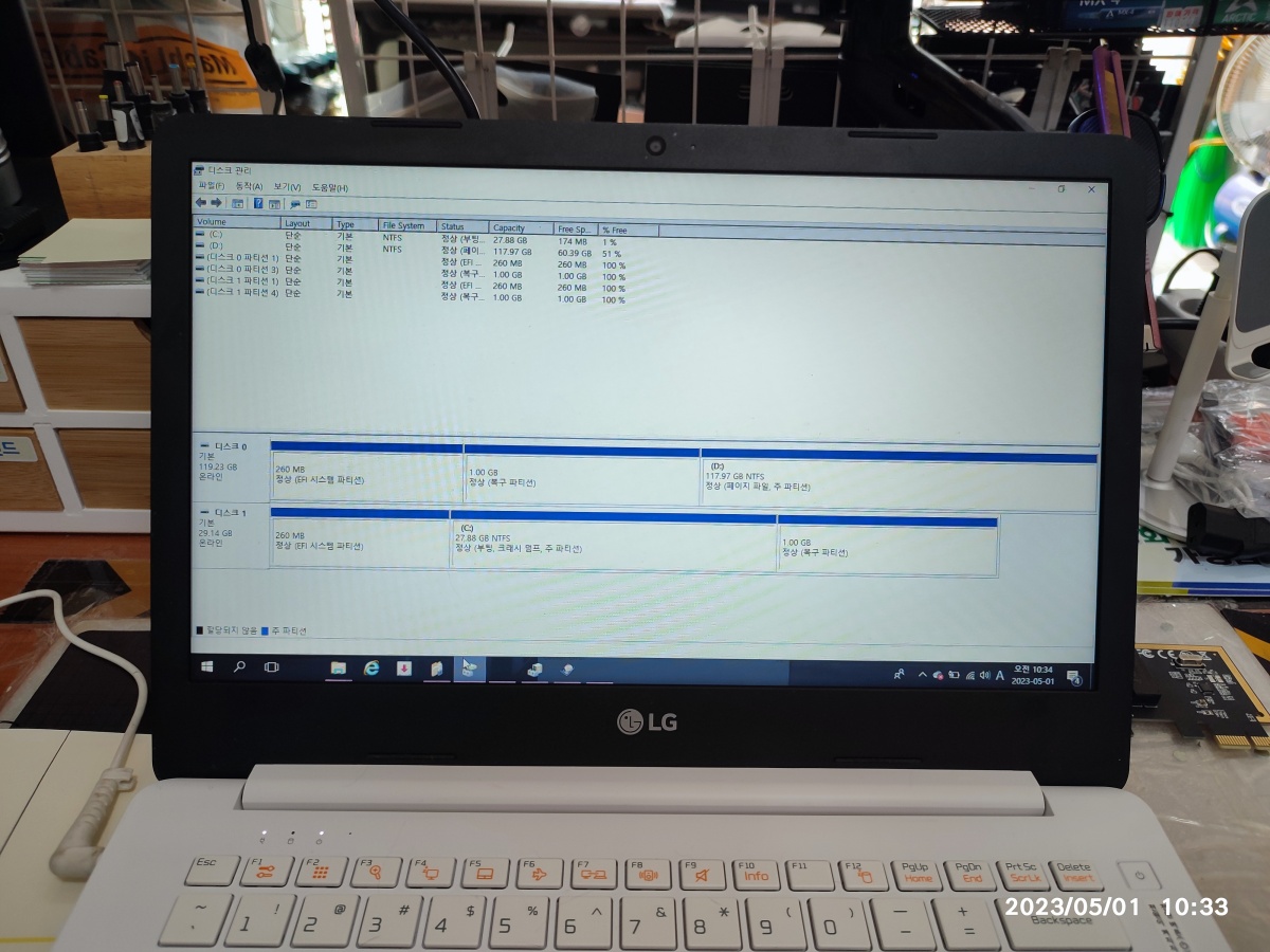 LG 보급형 노트북입니다. C드라이브의 용량이 64기가 정도로 낮게 출시된 노트북입니다. 그래서, 윈도우10 설치 후 남은 공간이 많지 않은데, 얼마 사용하지도 않았는데, C드라이브 용량이 가득차서 C드라이브 용량 업그레이드를 위해서 찾아주셨습니다.