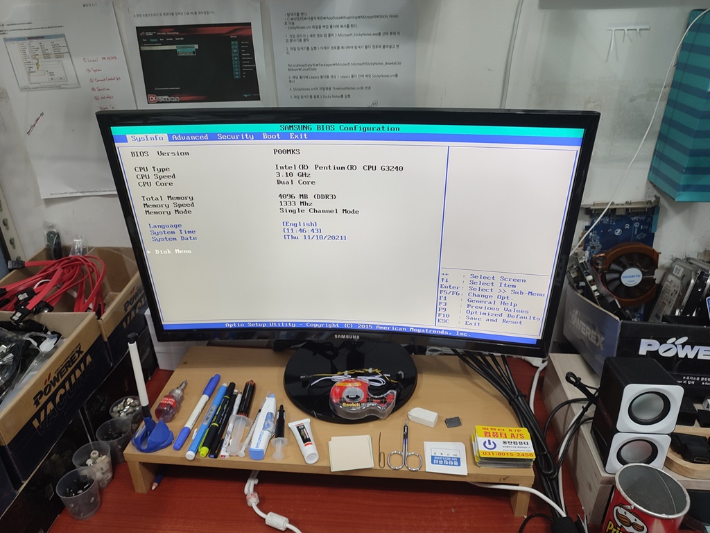 위와 같이 부팅 설정 및 컴퓨터 내부 청소까지 끝내고 아래와 같이 수리 일자를 부착해서 출고했습니다.