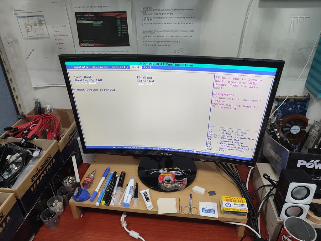 (5) 윈도우10 설치할 설정을 변경해주고 있습니다. Secure Boot 끄면, UEFI OS를 설치할 수 있는 옵션창이 뜹니다.