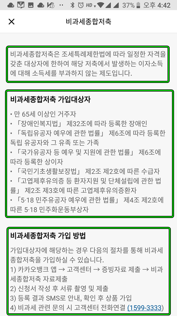 아래는 비과세 종합 저축에 대한 안내문 입니다.