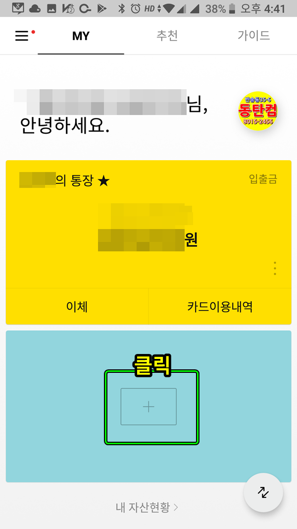 (1) 카카오뱅크 앱을 실행해서 + 를 누르면,