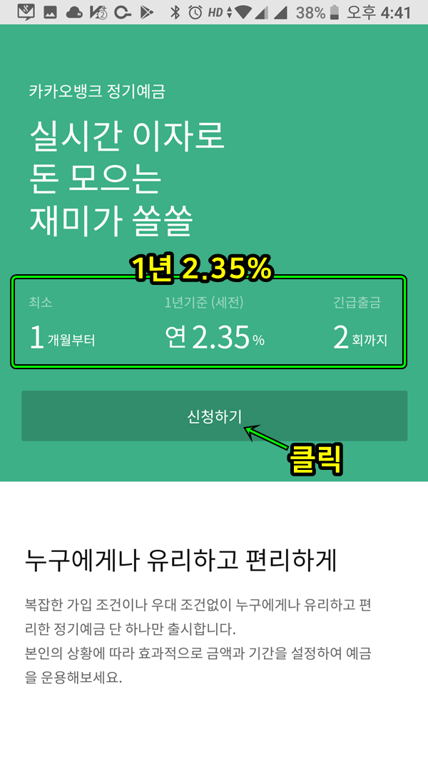 카카오뱅크는 그런 부분이 없고 금리도 높은 편? 이라서 ...