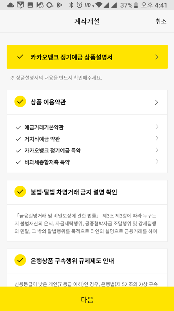 (4) 계좌개설 전체 동의 필요