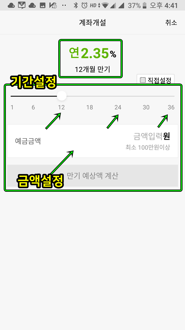 (5) 기간 설정하고, 예금할 금액을 설정하면 됩니다.