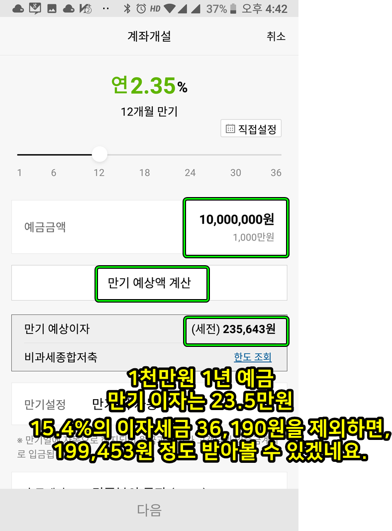 (3) 1년 2.35% 이자입니다. (세전)