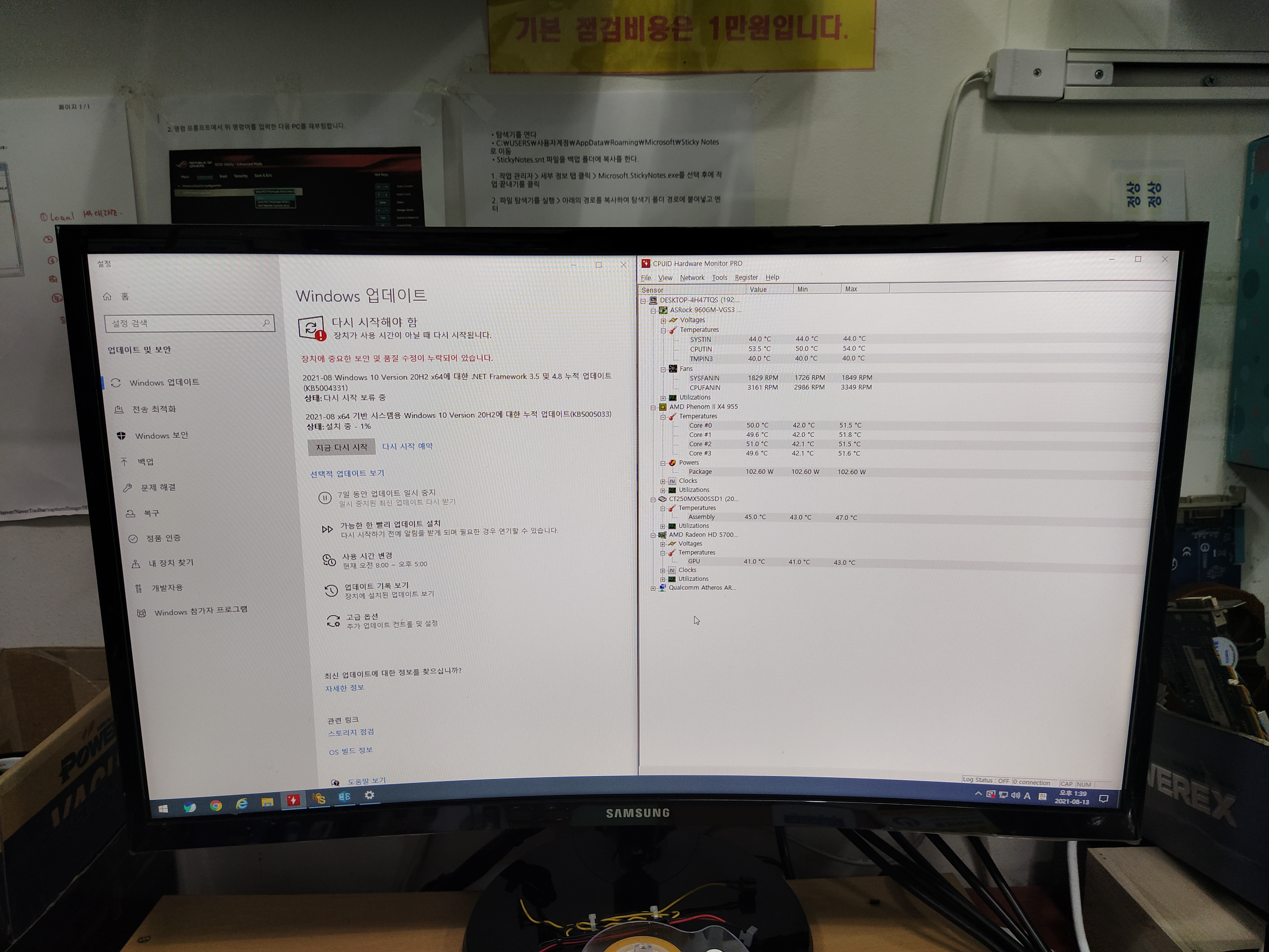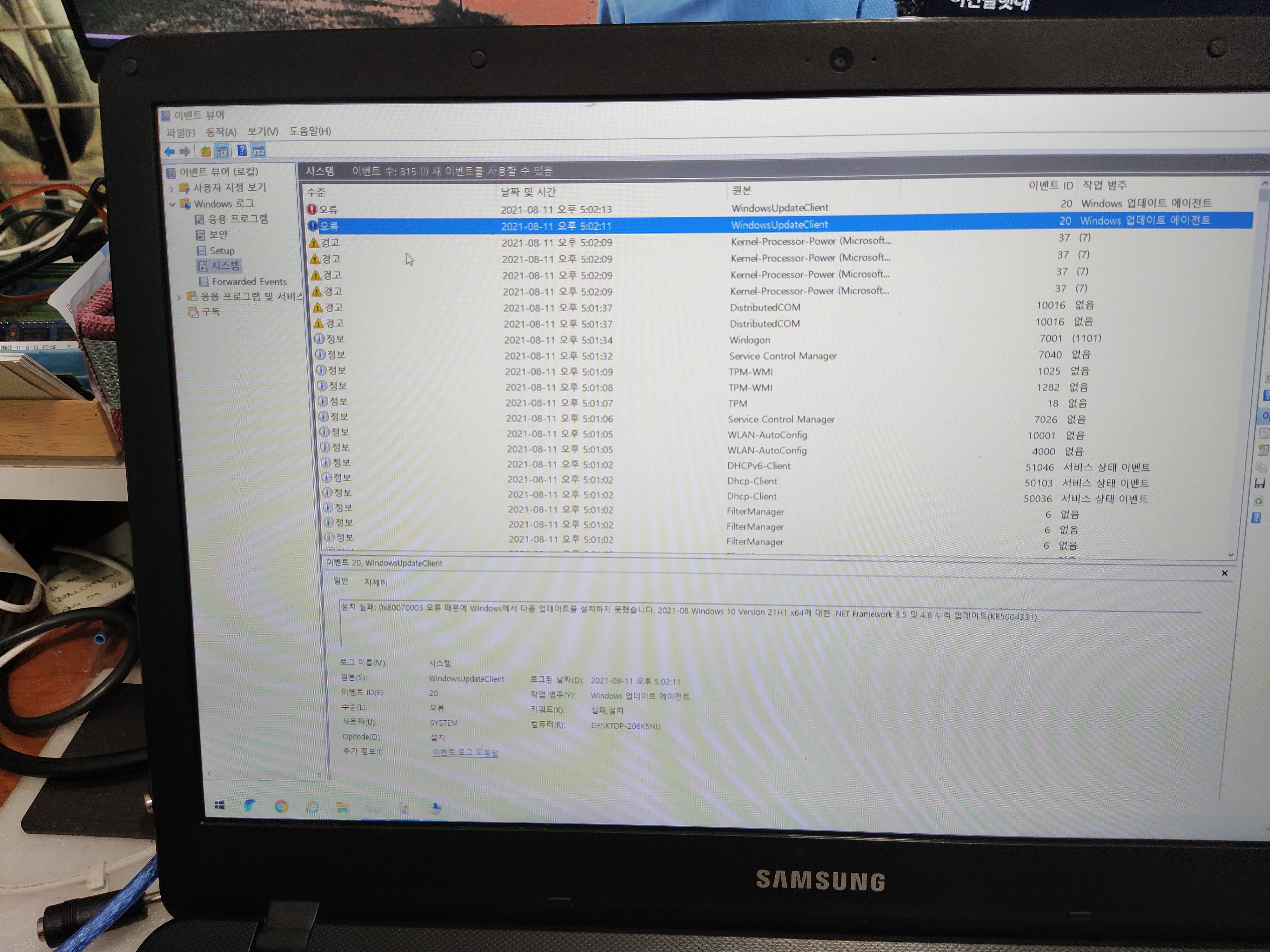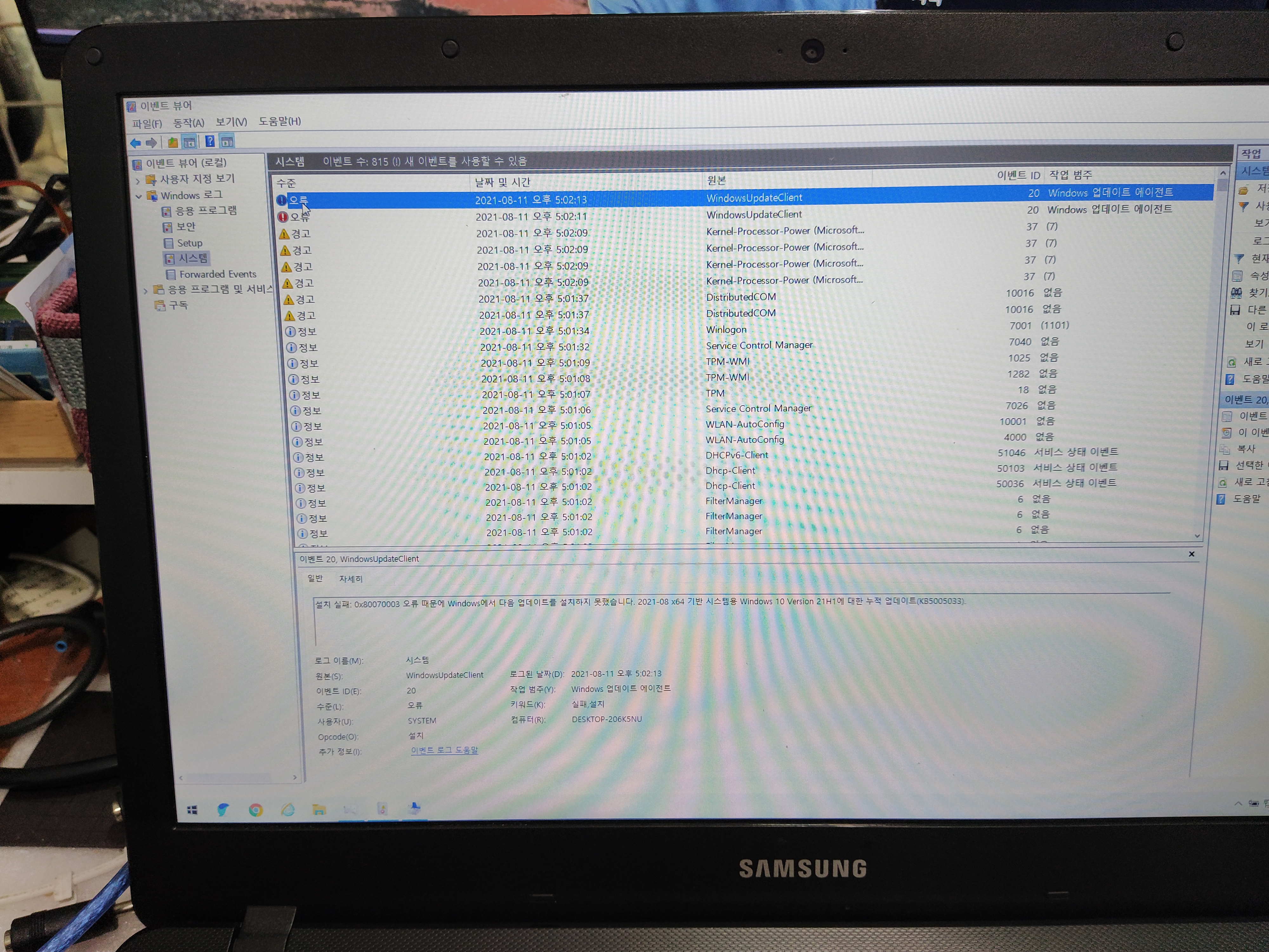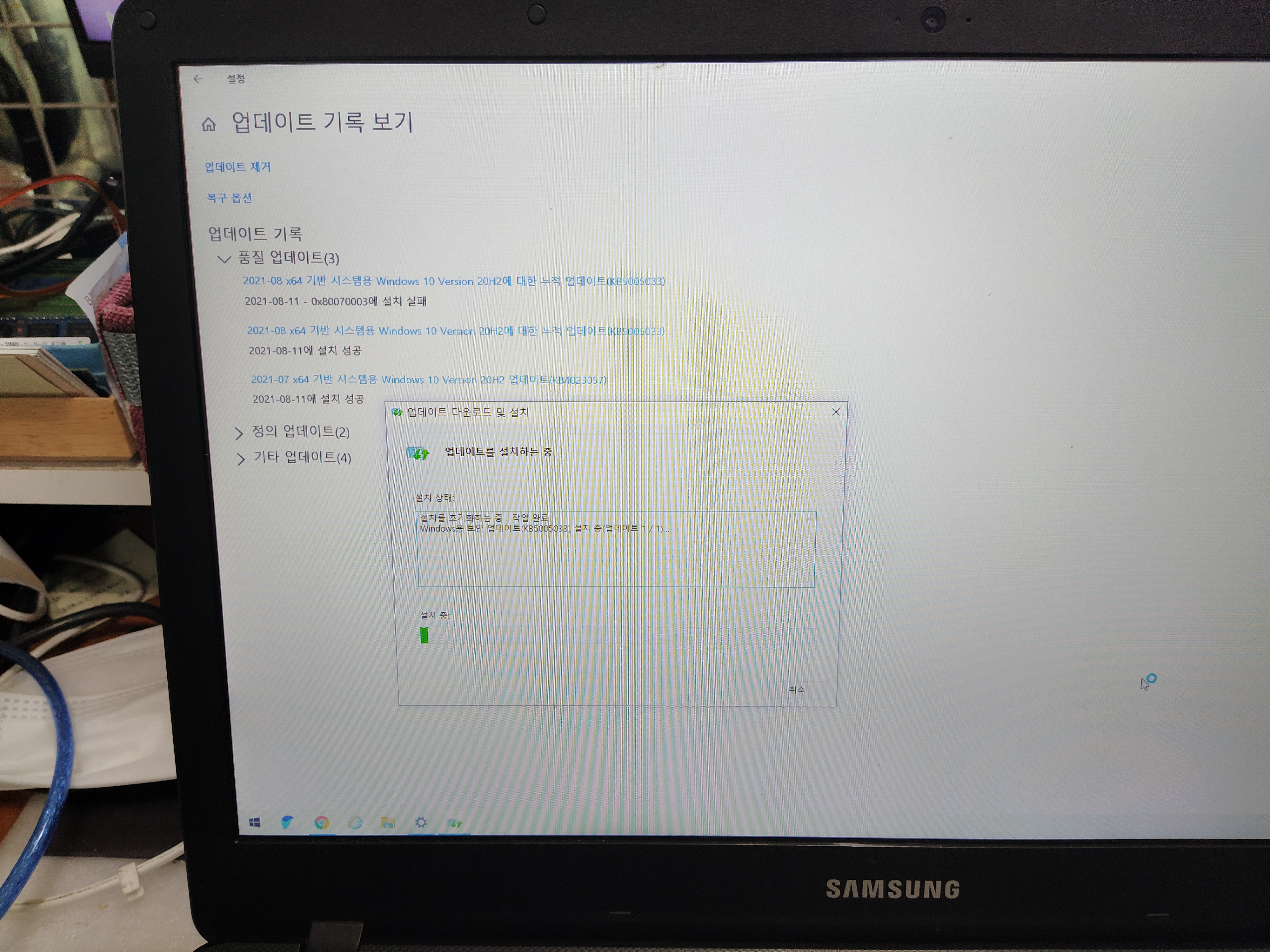 윈도우 업데이트 (KB5005033) 실패한 사례