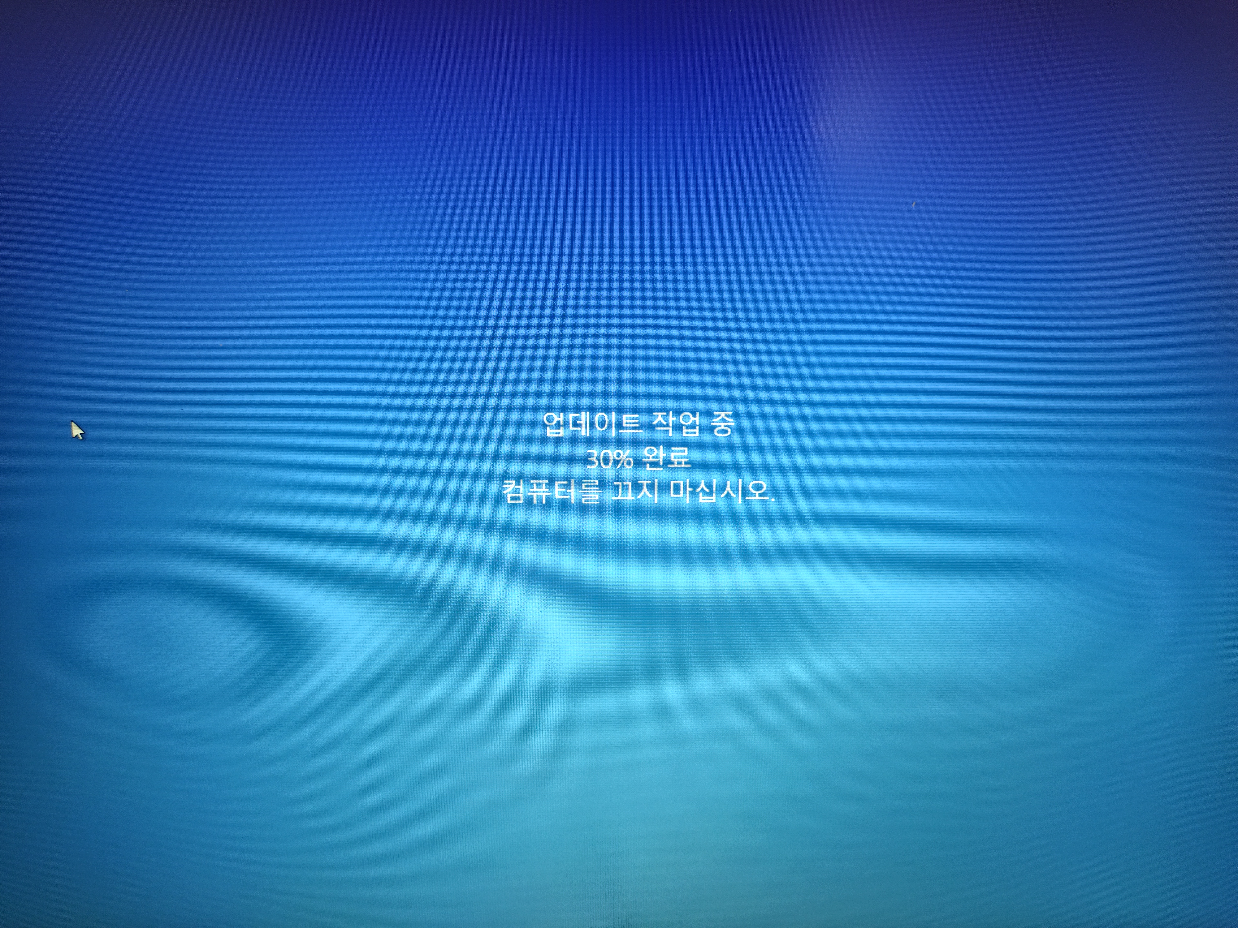 오늘은 데스크탑 2대를 작업했는데 모두 업데이트 성공했네요. 7%를 넘어 8%로 넘어가면 => 30%에서 재부팅되고 => 30~100%까지 진행, 정리 0~100% => 대부분 성공하는 거 같습니다. 7%에서 뭔가 문제가 생기면, 업데이트가 실패됩니다.