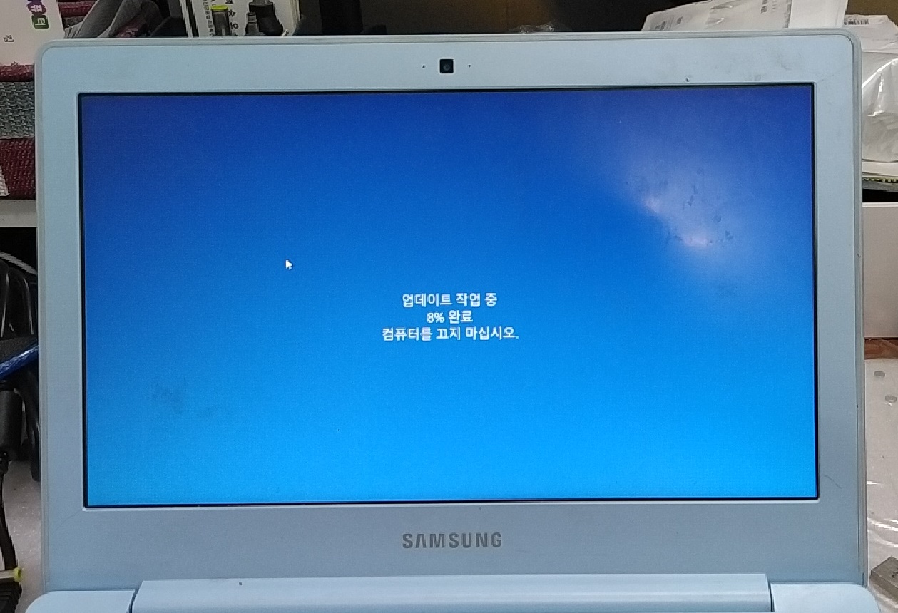 NT110S1J-K13L 노트북입니다. 아주 느린 노트북인데요. 업데이트될 때, 예감이 좋지 않았는데 역시나 실패했네요. 2015년 제품입니다. 아래와 같이 7%에서 리셋 후 업데이트 실패되네요.