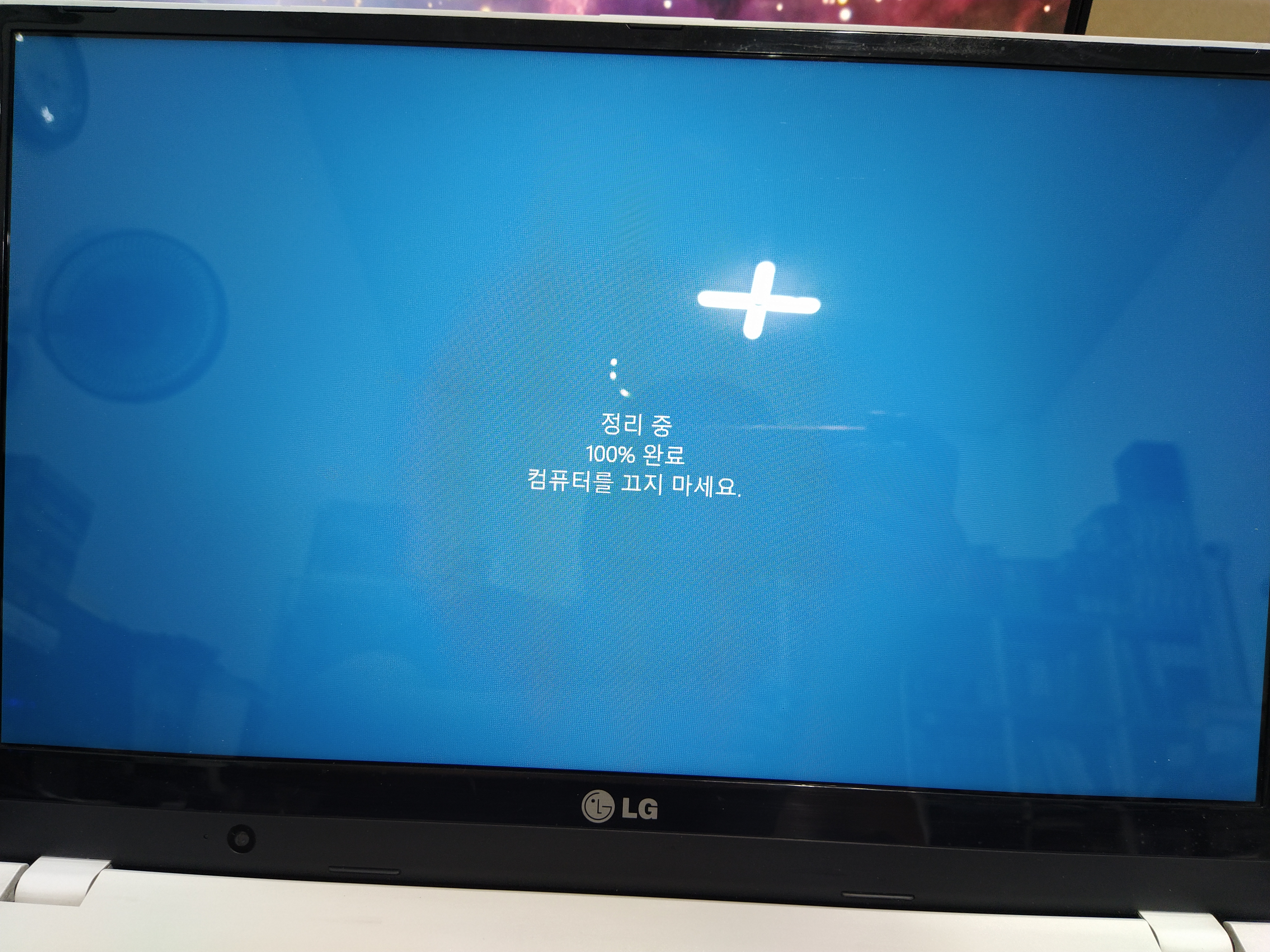 업데이트 완료후 정리 중 0~100%까지 진행됩니다.