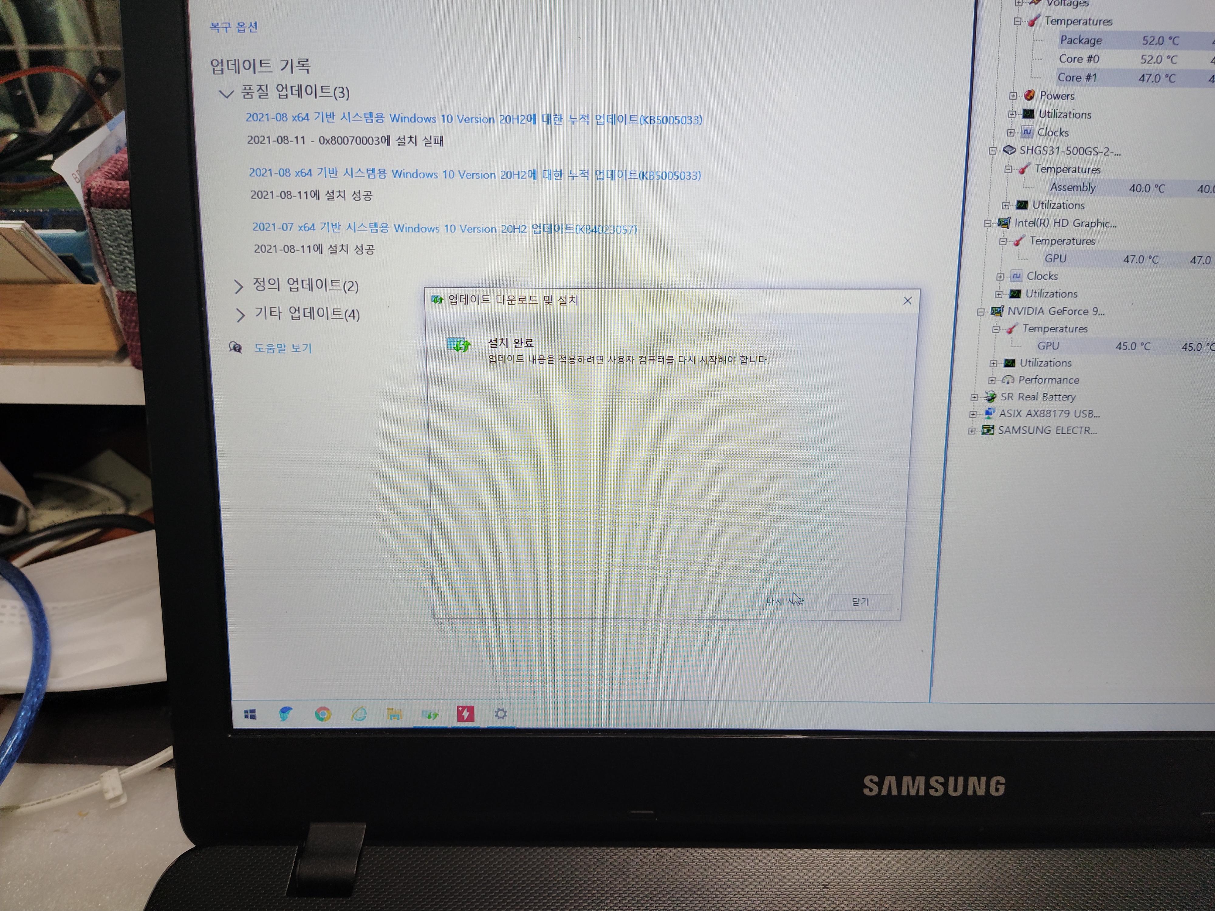 윈도우 업데이트 (KB5005033) 실패한 사례
