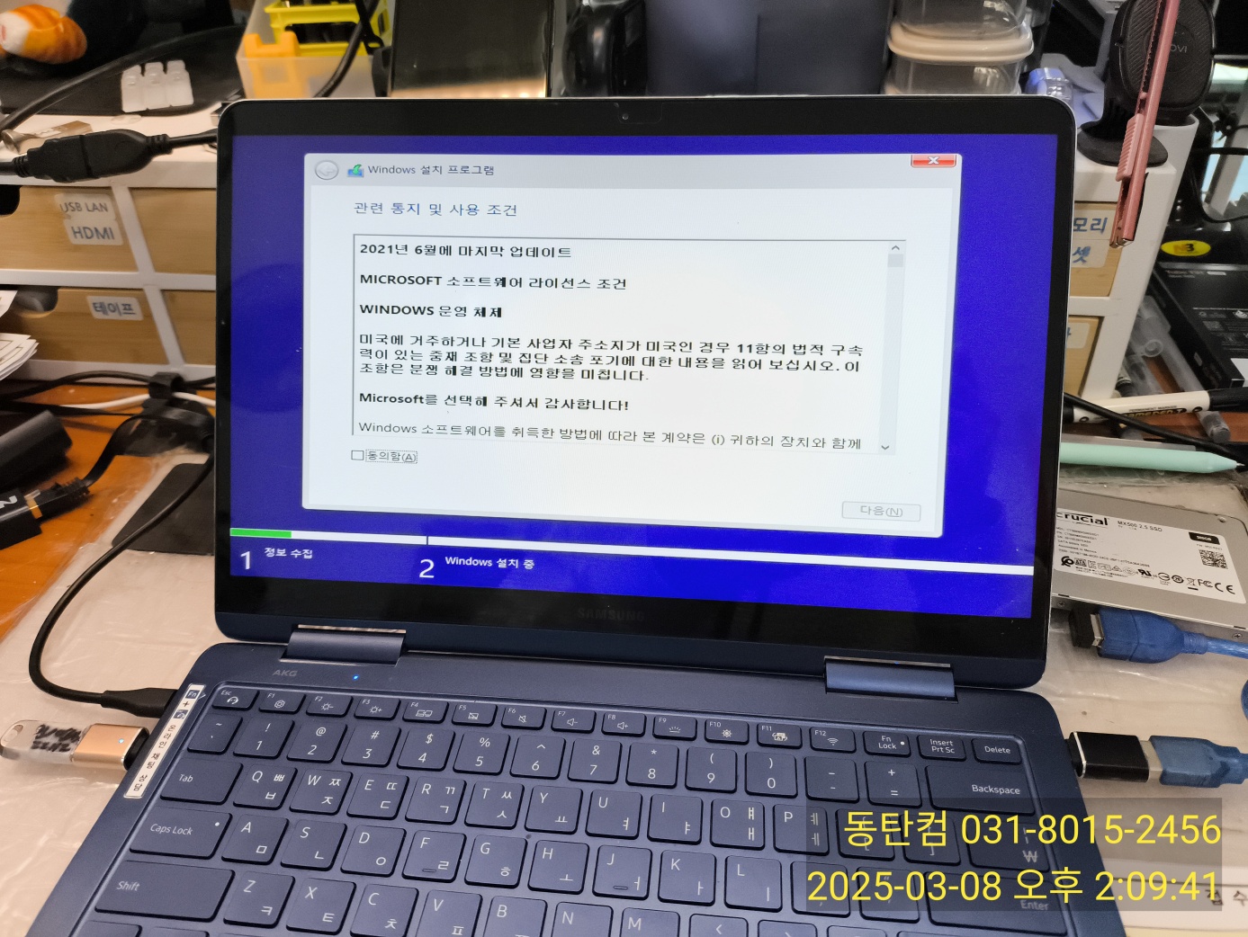 일단은 윈도우 S/W적인 문제가 가장 의심스럽기 때문에, 윈도우를 재설치해서, 해결되는지 확인(테스트)할 필요가 있습니다. 재설치하는 과정에서 기존의 SSD의 불량을 체크하고 윈도우 재설치를 진행합니다. 다행히, 컴퓨터에 저장된 자료는 필요 없다고 하셔서, 백업은 진행하지 않았습니다. 윈도우 설치하는 과정은 1시간 ~ 2시간정도 시간이 필요합니다. 그 사이에 SSD의 현재 상태와 메모리의 상태도 동시에 점검하고 있습니다.